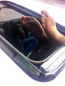Sunday Jump One:  If you recall from the video of my first solo IAD, I exited the plane, looked down and followed my line of vision.  I barrel-rolled out of the door.  Ugly Prom Date (for those of you who asked – You have an ugly prom date, you obviously asked her for a reason, you dance all night and enjoyed the hell out of it.  However, you know your friends are going to give you shit after the night is over.)  So – jumping my first solo IAD gave me perspective.  Before it I had nothing to compare “jumping” to.  It gave texture to my experience.  After lengthy discussions with a number of people, I tried to determine how to make my exit a more favorable one.  Located outside the door of our Cessna is a small silver step (maybe 4″x6″ roughly).  In the minutes leading up to jump two, I “tried out” new thoughts on exits.  I sat inside the door of the stationary plane and, with Sam’s guidance, tried to get a feel for what would work for me.  The thing that continued to haunt me – I HAVE to arch, I HAVE to look up.  I decided against trying to use the step.  It was a little too high to feel comfortable for me.  I decided to go the same route as I did in my previous jump and just concentrate on the things that I needed to improve upon.  So, in the plane and up in the air we went.  Oddly, I was not as “sick to my stomach nervous” as with my first solo.  I felt as if my nerves were so much better this jump (don’t get me wrong, I was still nervous – I just didn’t puke before my jump this time).  We climbed to 3,000ft (under my breath I whispered over and over “look up, look up, look up”) and Sam began to check my gear, prep my pilot chute and go through the checklist for my exit.  As we came to our jump altitude (4,000ft), Pilot Ryan gave the call “DOOR” and the door went up.  I waddle my ass forward to get in position.  Sam retrieved my pilot chute and then the moment was upon us.  “CUT” and the engine was suddenly off.  Once again I had difficulty waddling ass to the door (it was in that moment that I vowed to myself to get in better shape).  Sam screamed “YOU READY TO SKYDIVE?”  “YES” “SKYDIVE!”  Out of the door flew me and my pilot chute.  Reviewing the footage, you will see that I did look up this time.  BUT – damn that arch (or lack thereof).  My hands flew forward and my feet I guess wanted to come up and meet my hands.  I think I might have looked as if I was in a seated position or something.  The moment my chute deployed I folded like a wallet (which explained my sore ass muscles a few hours later hee hee).  Ralph caught a great picture of my exit.  When I posted it on Facebook Aaron made a comment and said I look like flattened Frogger…