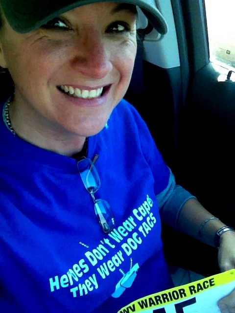 My day started very early. 530AM on a Saturday is not something I like to think about. It’s that one morning I am able to sleep in. And here I was, throwing my legs over the edge of the bed and allowing my feet to realize they needed to take the first steps of the day. How did that happen? Easy, I had been plugging along with a healthy routine for a number months. I was doing well. Then my Dad was released to go home from the nursing home, I started working a new job and the construction of my new home went into full swing. In the world of “Couch To 5k”, I had lept off the couch and then slipped on the rug and fell on my face. After losing well over 20 pounds, I packed back on 10 of those. I could not kick my healthy lifestyle back into motion, no matter how hard I tried. Then last Thursday a reminder email was circulated for the Wounded Warrior 10k/5k being held in Ripley, WV. I hadn’t been working there when the original email had circulated, so it was news to me. I thought about it and thought, what the hell – it is for an amazing cause and maybe this is the boot in the ass that will get me back on track! So I printed out the registration form and lamented the fact that I was probably not going to get a Tshirt. So, I would make sure to show up at registration as it opened to ensure a shirt. So, 530AM on a Saturday it would be.