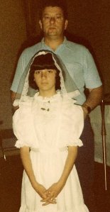 When I was in fourth grade and Ma finally caught Ms. Johnson beating the crap out of me at Scarbro Elementary, my parents decided to enroll me in Sts Peter and Paul Catholic School. I had been baptized Catholic when I was born. But my parents attended the Church of God, in Carlisle, like my Nana. I was instantly fascinated with the Catholic religion and attended church twice a week during the school week per the structure of the education I received at Sts Peter and Paul. I decided I wanted to attend church on Sunday, Dad volunteered to take me. He became fascinated as well. Because I was baptized Catholic, I was able to receive instruction in fifth grade (with all the second graders at the time) and received Holy Communion on (I believe) Mother’s Day. Both of my parents converted to Catholicism the same year. My parents both went on to be Eucharistic Ministers in the church. Dad remained a minister up until Ma died. We sat in the same pew, on the same side of the church every Sunday. Daddy continued to sit there years after Ma had passed. It was our constant in life, the church and our designated pew.