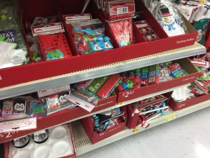 Then, in the very last aisle of Christmas paraphernalia I found it – one LITTLE section (less than six foot on only one side) of Nativity items, with proper signage: