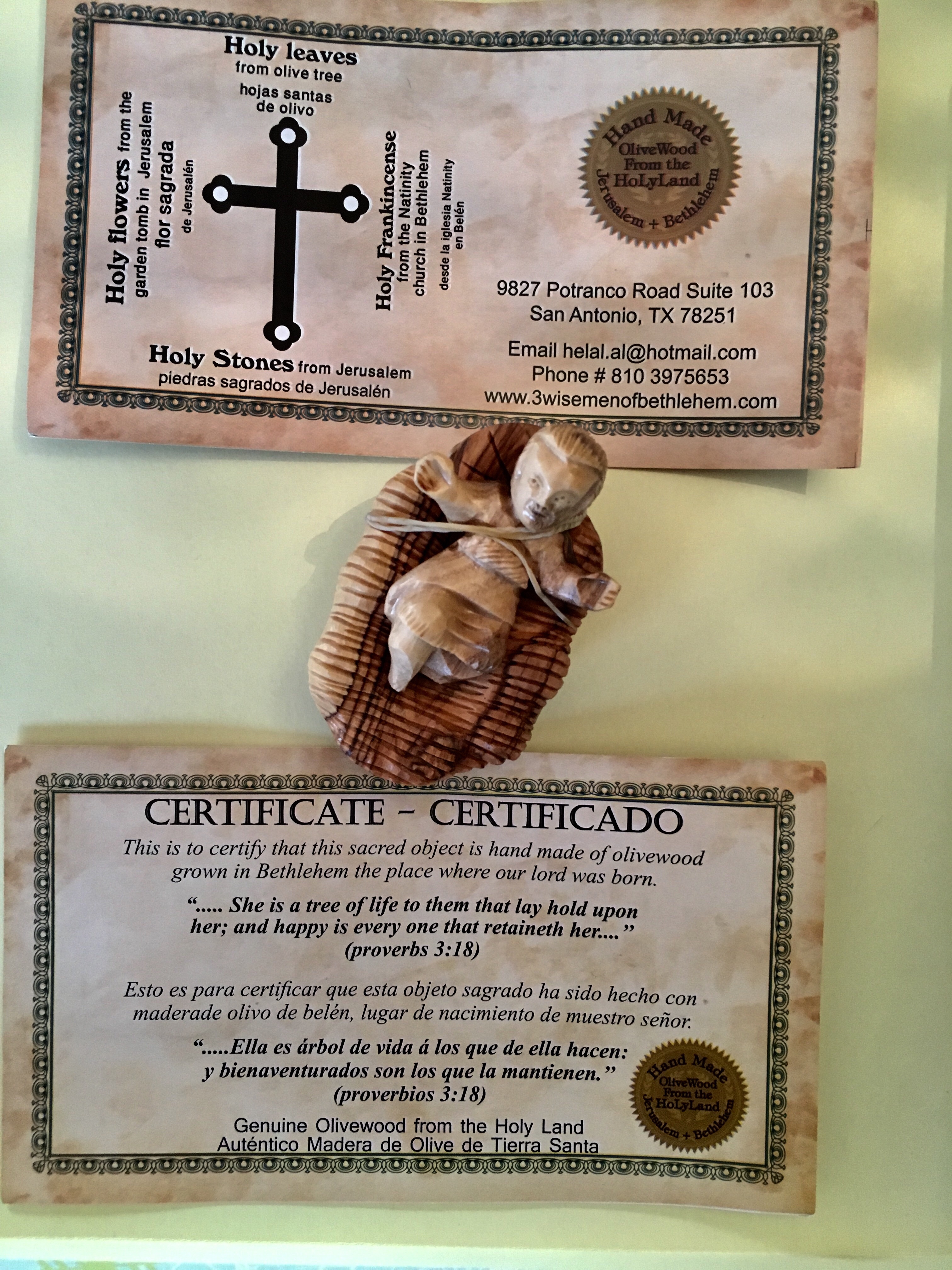 Leaving BAM and making my way through the mall I thought I would find a virtual cornucopia of Babies Jesus. But alas, I did not. Until… one of those random vendor kiosks in the middle. There was a guy selling wooden carvings of the Nativity made of wood from the Holy Land. YES! I asked if he had standalone Babies Jesus and he DID! He directed me to two. I asked the price, it was a bit and I negotiated with him and explained my adventure and he was accommodating. He discounted this Baby Jesus for me and I said YES! This is the Certified Baby Jesus, the real deal. And, the best looking one out of the bunch. Lesson #5 most people will work with you on even the most random of requests.