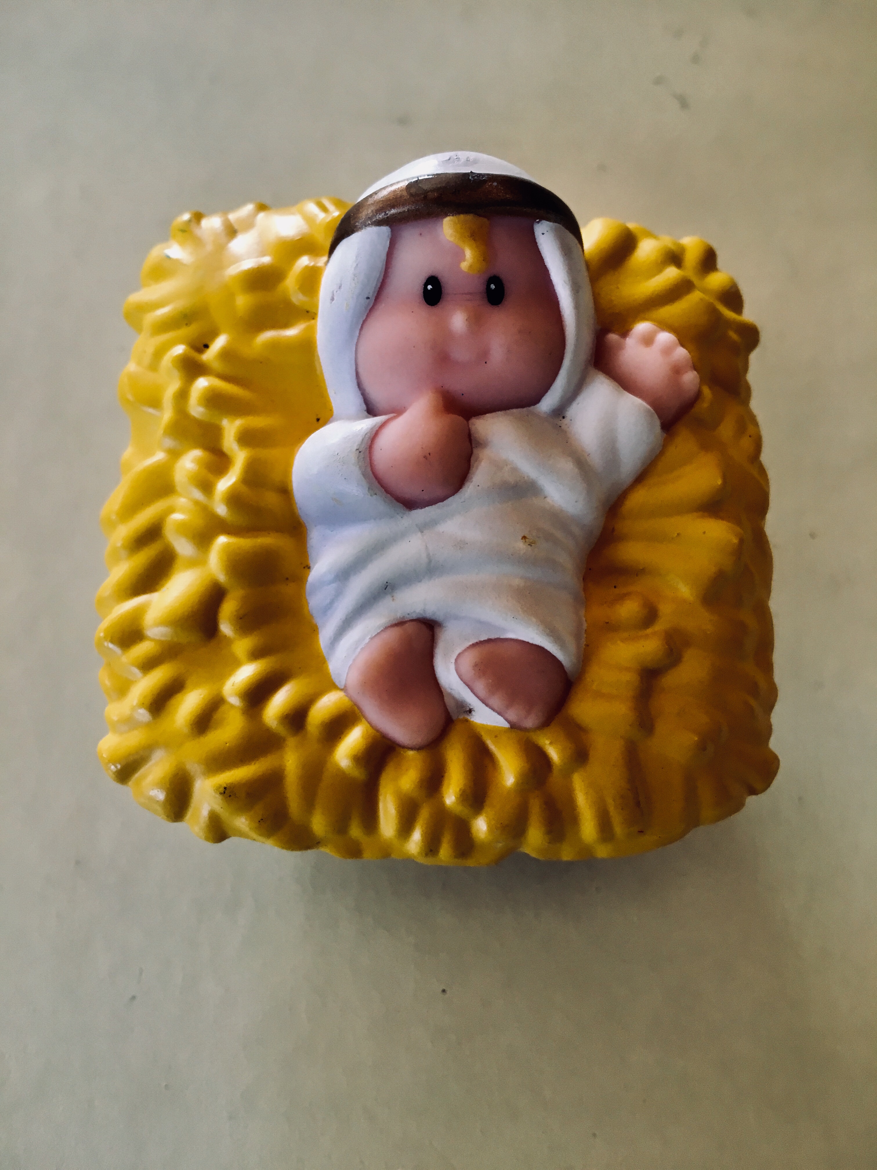 eBay is my friend and proved very fruitful. I ordered a Fisher Price Little People Baby Jesus Nativity replacement baby. As a side note, I will eventually buy myself that entire Nativity. Kinda loved it. So, it arrived and I put it somewhere. I cannot remember where. I tear my car apart, cannot find it. I tear my office apart, cannot find it. Then, right before I was planning on mailing out the package… I found Jesus. He was hiding in a box of magazines and books I intended on putting away… He is adorable!