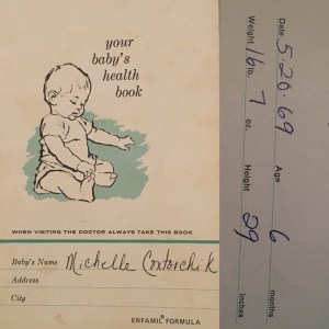 1968-11-15 I was born at St Peter’s Hospital, New Brunswick, NJ. Dr. Scully was kind enough to make sure I had no problems during my entrance into this crazy world. I was delivered via cesarean. I weighed 8 lbs 1 oz and was 20.5″ in length. When she went into labor, it was raining and my Aunt Vee had to track dad down. He was with Jewell. On his way to the hospital he had a bad wreck in which he almost died. The injury sustained from the wreck was to his spleen. He had to have emergency surgery to have it removed. He was in the hospital for weeks. Ma’s version of the story included at some point having me in her arms in her hospital bed and finding out that Jewell was in the hospital bed with my dad in his room on another floor. Below are: 1- two baby photos of Michelle Renee’ that are part of her childhood photos, 2-A congratulations card donating to the Gold Baby Book of St Peter’s that was found in a Baby Book for Michelle Renee’, 3-Newspaper clipping announcing Michelle Renee’s birth, cut from The Central NJ Home News, Guys& Dolls Section, 21-Nov-1968, and 4-The souvenir certificate of birth given to Rebecca Contorchick by the staff of St Peter’s Hospital. This was found in a Baby Book for Michelle Renee’. I am trying to confirm: 1-Although I know that Jewell blamed Ma for the rift between she and dad and vice versa for Ma, at what point does the fact that a child is being brought into the world affect the thought processes of right/wrong/move on? 2-Noted as dad’s contact information was 2505 Woodbridge Ave, Nixon, NJ, was this dad’s address with Jewell or with Ma? 3-When did Jewell and Dad begin their leg of this triangle, was it years previous or only months?