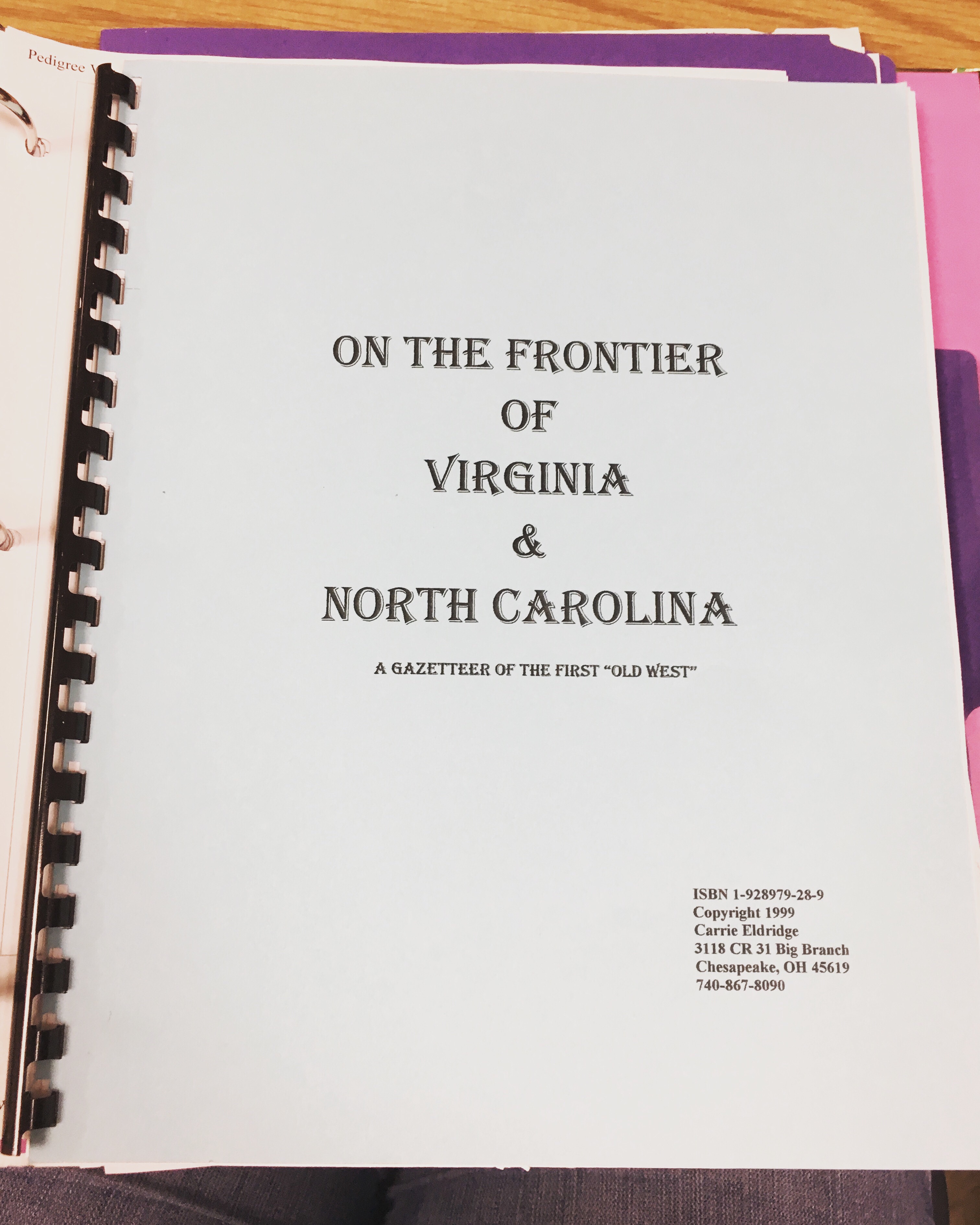 I won the speaker’s door prize: On The Frontier of VA and NC. It is a wonderful collection of county maps by state. I will share it with Renau (she really should have won, gave the right answer but she cheated! ha ha ha ha)