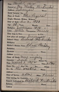 Coy Keaton Hendricks, DOB: 2 Dec 1928, DOD: 1 Mar 1952, Place of Death: Glen Rogers, WV