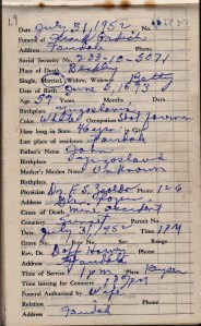 I have come across something that is not associated with my tree, however, someone within my tree had a wealth of genealogical references without knowing it at the time. My Pawpaw (Alex Taraczkozy) was responsible for the funeral fund at the mines where he worked for (at least) a couple of years. He kept the disbursements notated in a funeral directors memo book.