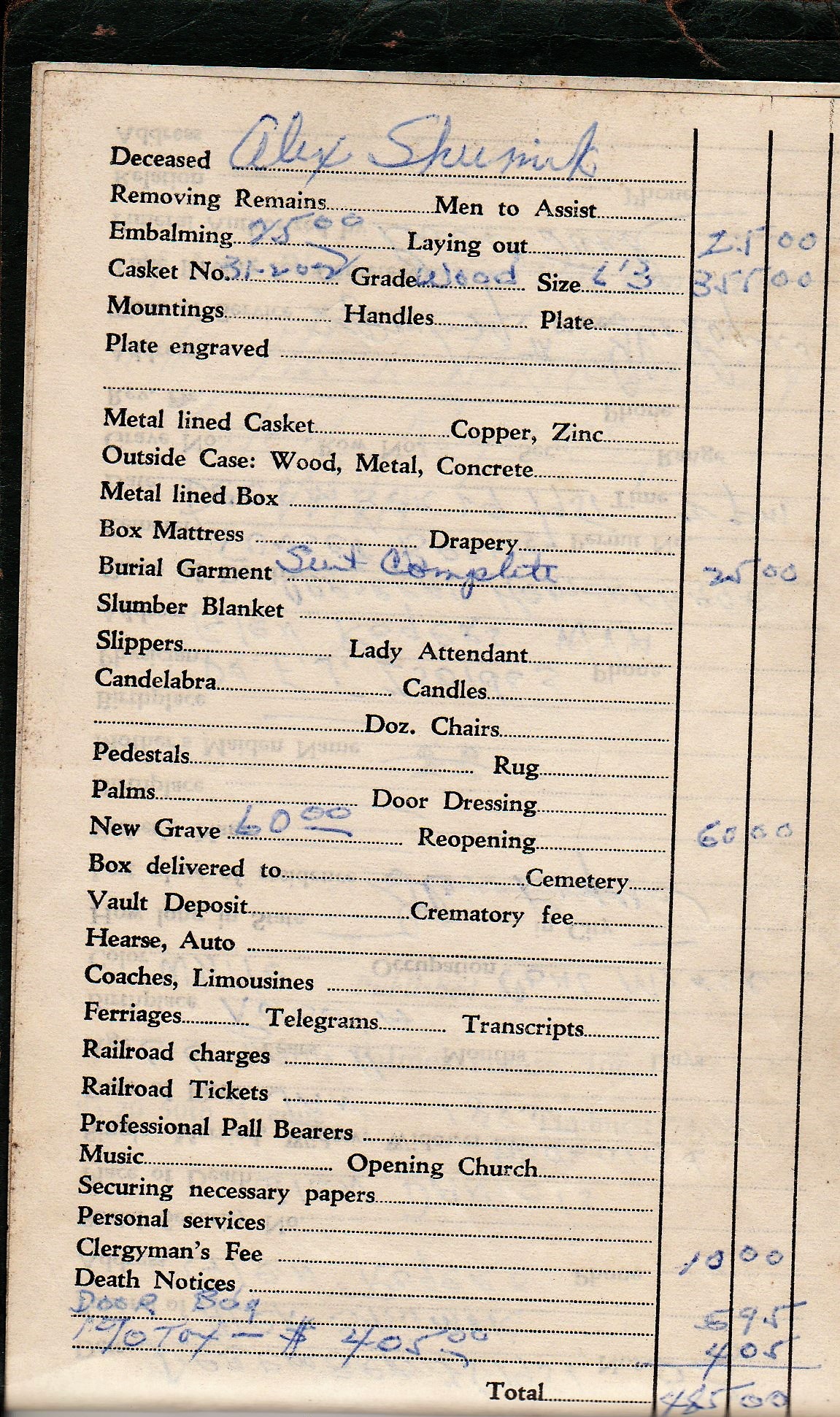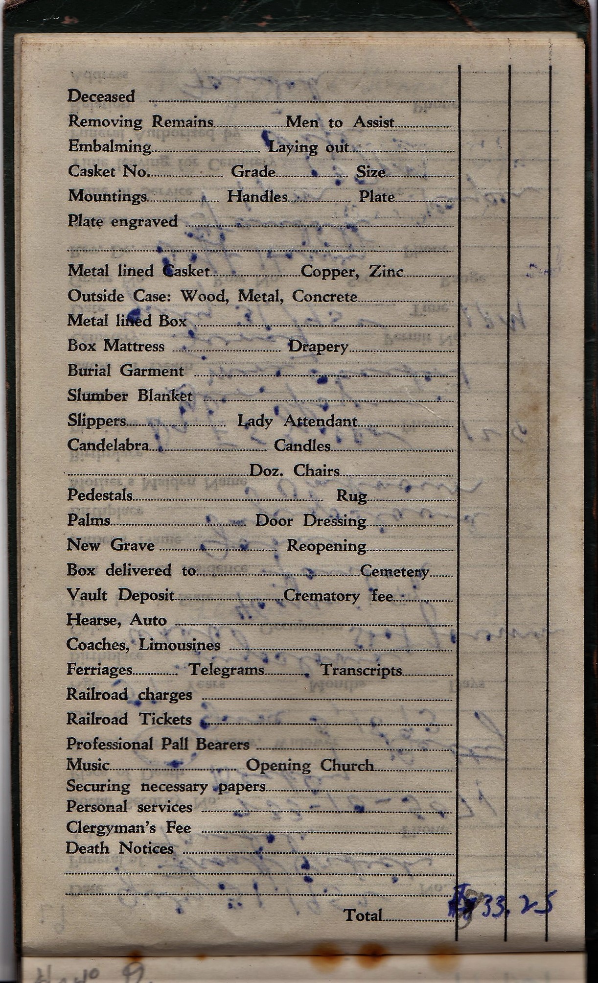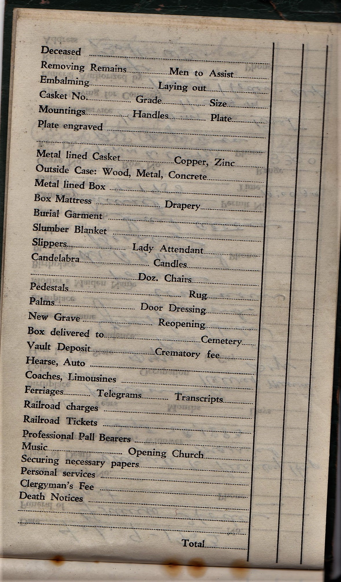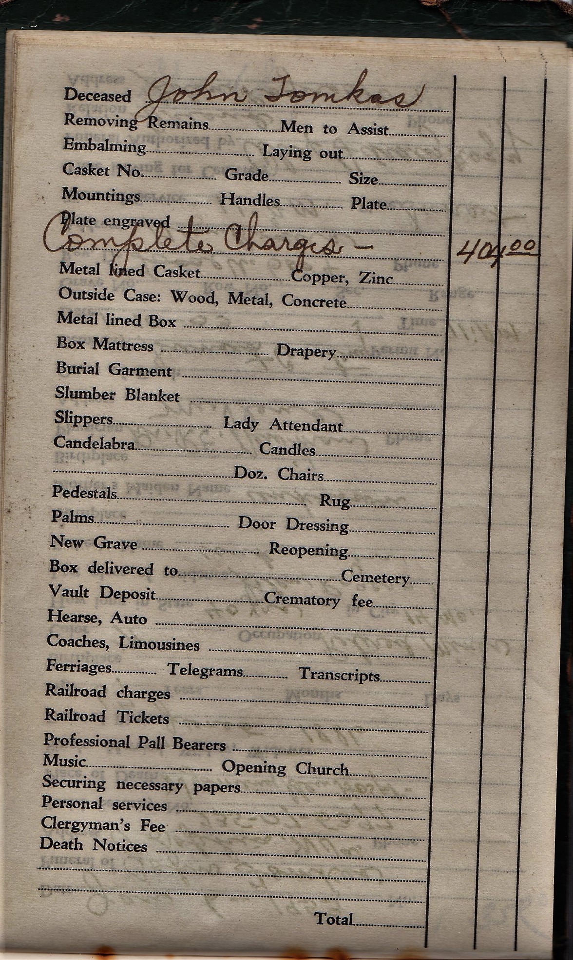 I have come across something that is not associated with my tree, however, someone within my tree had a wealth of genealogical references without knowing it at the time. My Pawpaw (Alex Taraczkozy) was responsible for the funeral fund at the mines where he worked for (at least) a couple of years. He kept the disbursements notated in a funeral directors memo book.