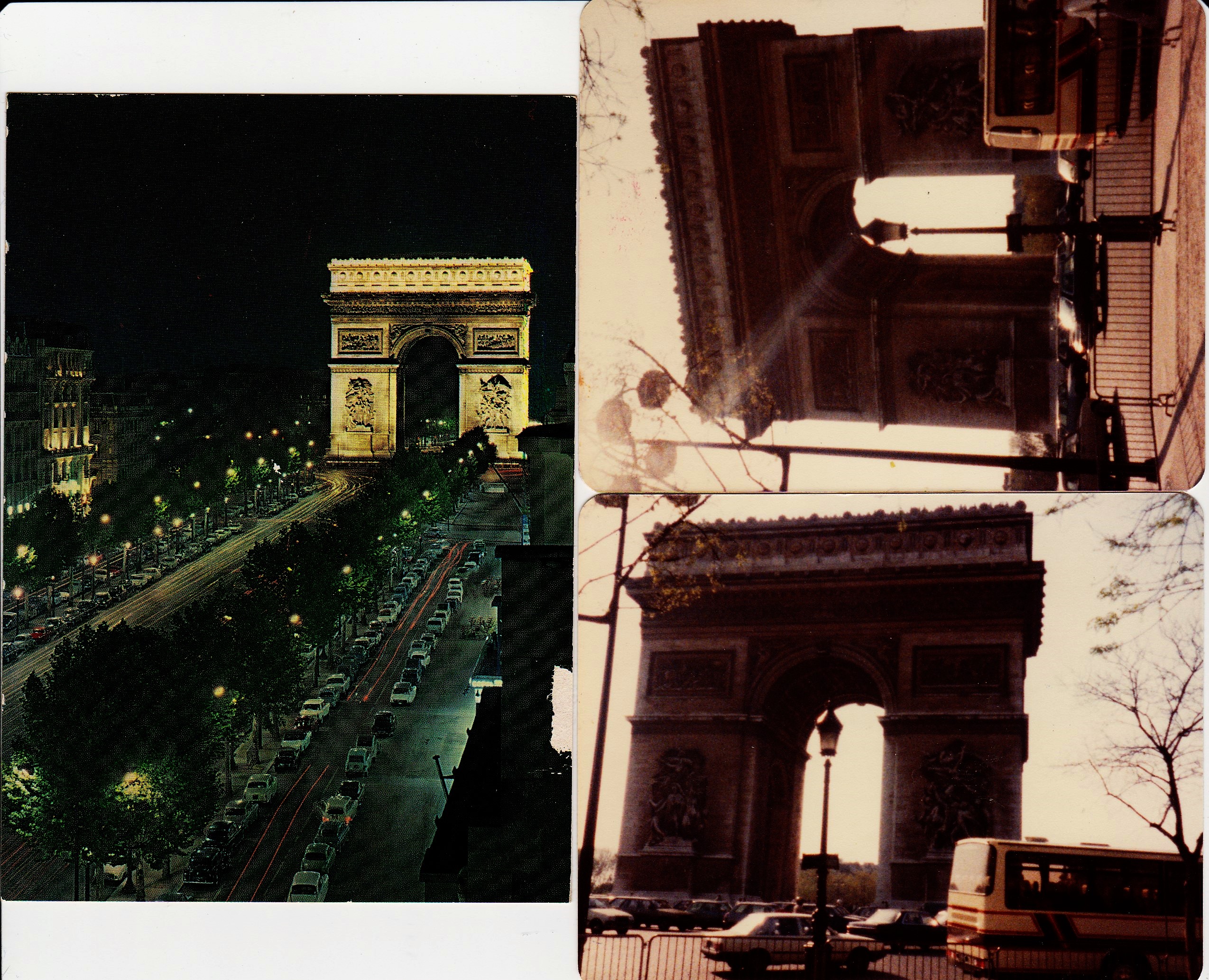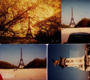 The one thing Paris is known for? The Eiffel Tower! The pic in the corner, all beautiful and orange – it is a post card. How I wish now that there were digital cameras back then! The Eiffel Tower is a wrought iron lattice tower on the Champ de Mars in Paris, France. It is named after the engineer Gustave Eiffel, whose company designed and built the tower.