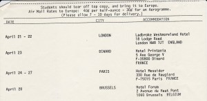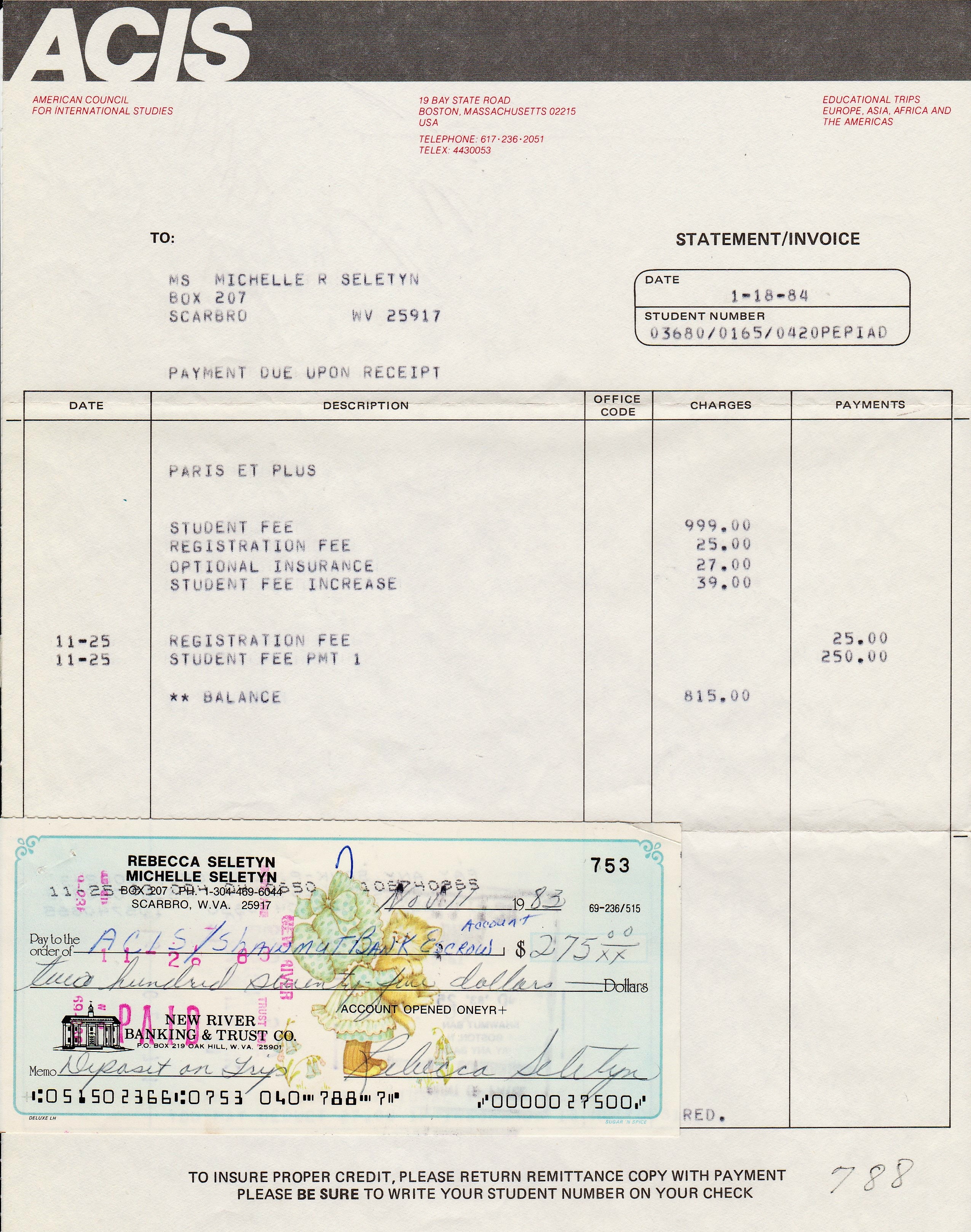 I have had a wonderful time the past two days sorting through these old papers and pictures. Ma pack-ratted the paperwork from my trip to Europe in 1984 and I found it in a random manila envelope at Dad’s when he passed away. Thirty-four (plus) years ago, my Oak Hill High French teacher, Kay Jeffries, announced in class that there was going to be a class trip to Europe and passed around handouts to those of us who were interested. I was fortunate enough that Ma said yes. As I remember it, I had enough money to pay the student fee of $250 in my savings account. I asked for birthday money instead of gifts that year and I worked little odd jobs to save up my spending money. Looking at the invoice, $1,090 is so amazingly cheap (by today’s rate of money). I know it was a chunk of change in those days and I am still thankful to my parents for allowing that experience. Thirty four years ago TODAY I was in Paris, France. What an adventure!