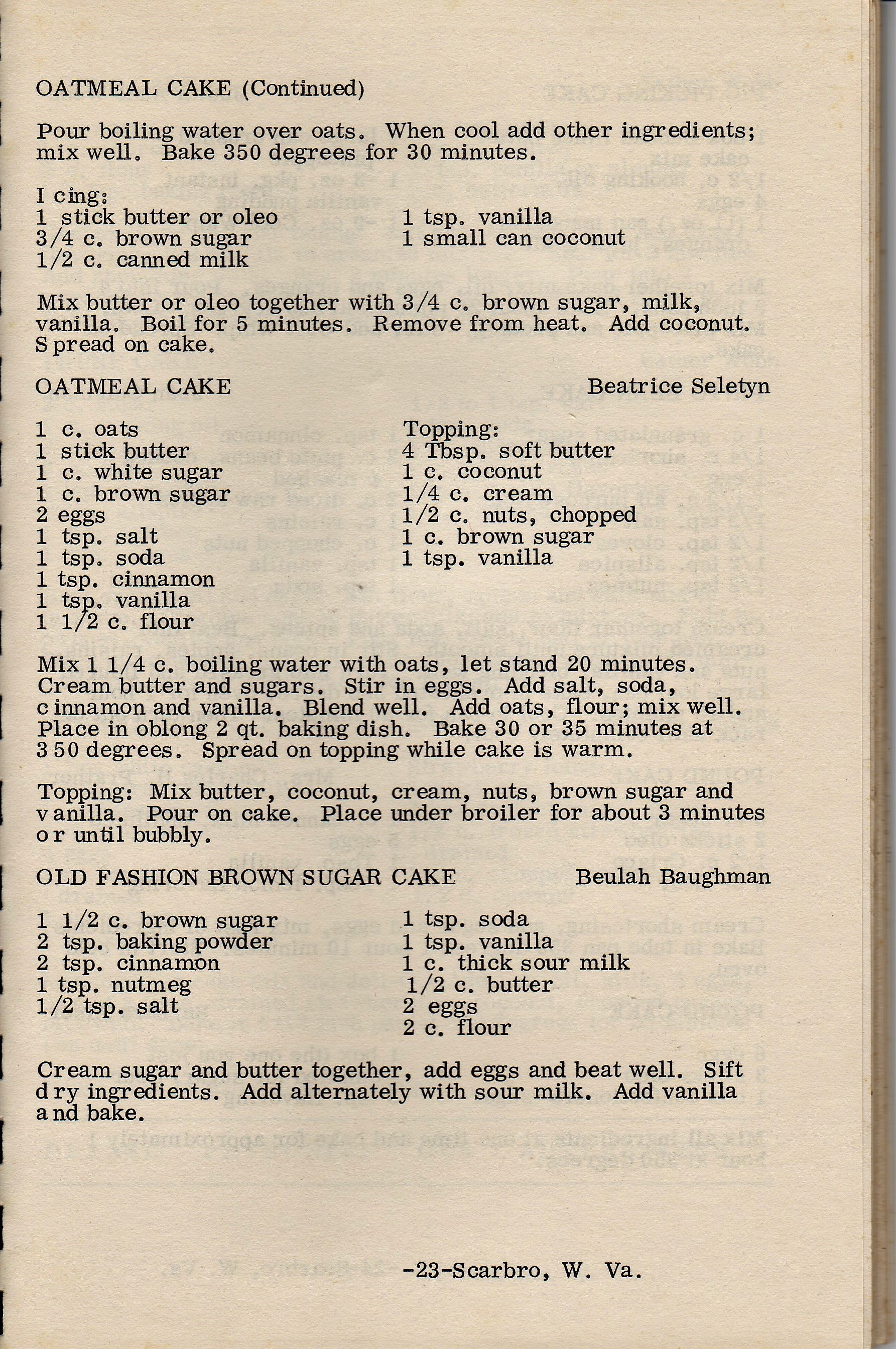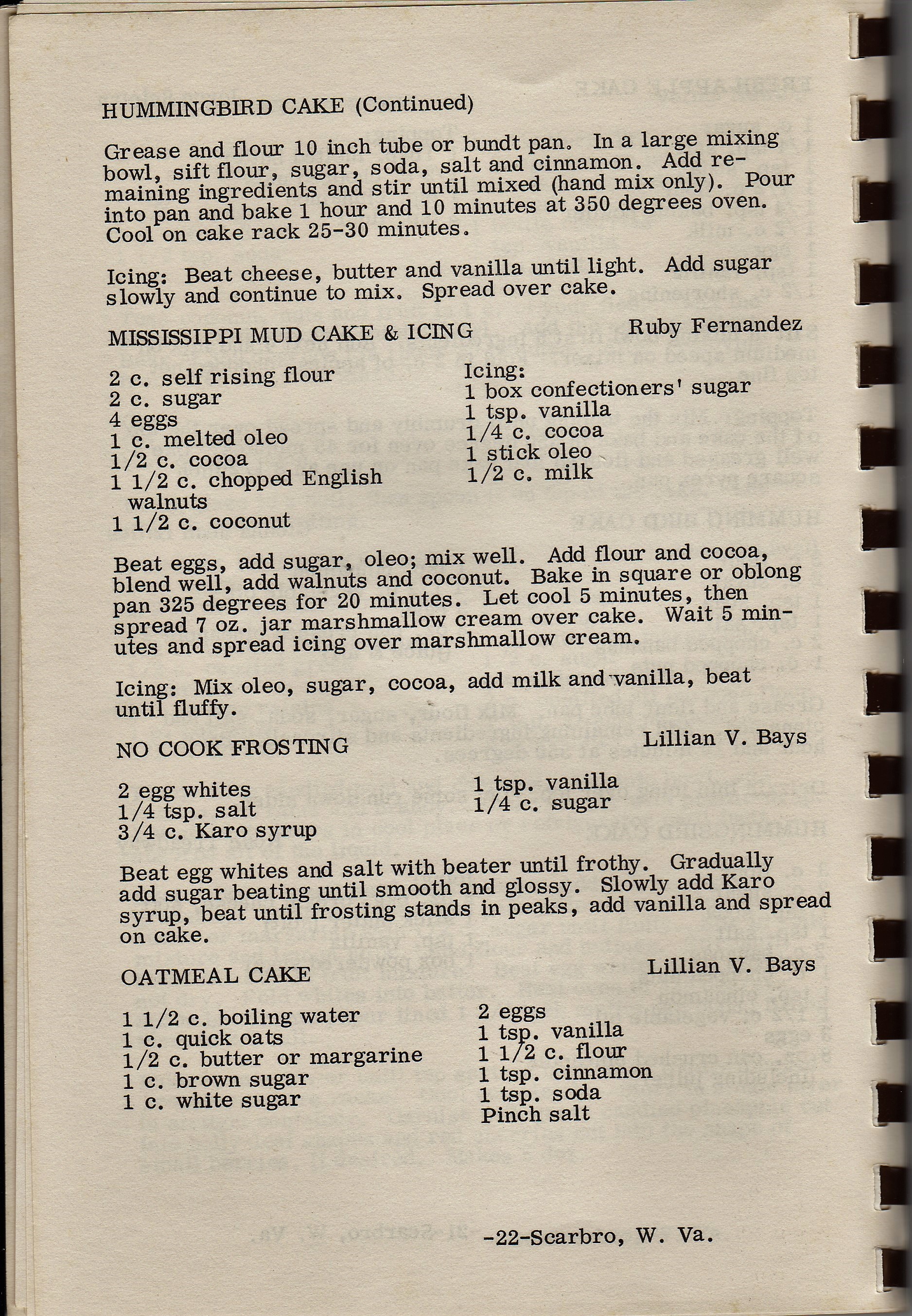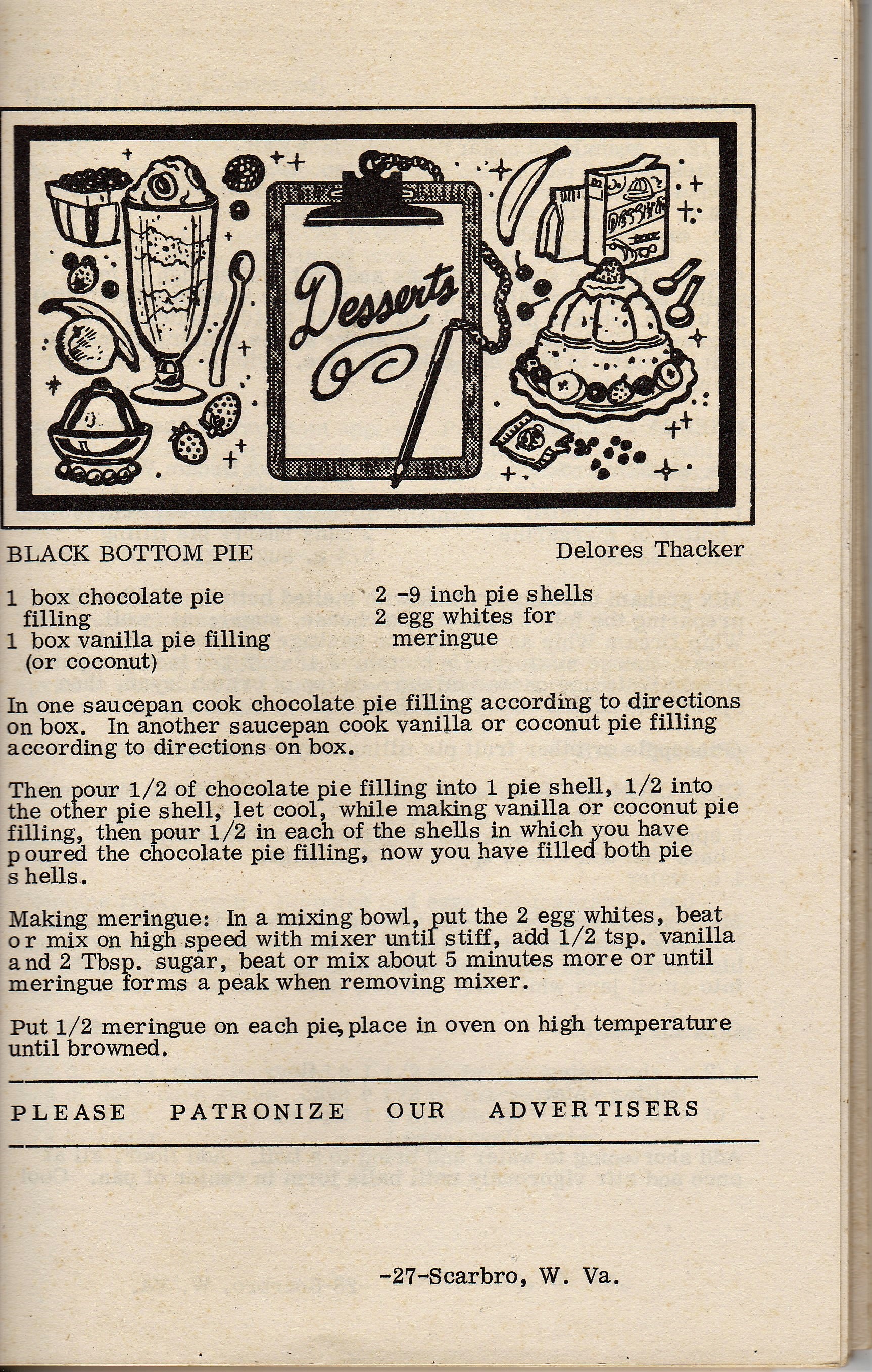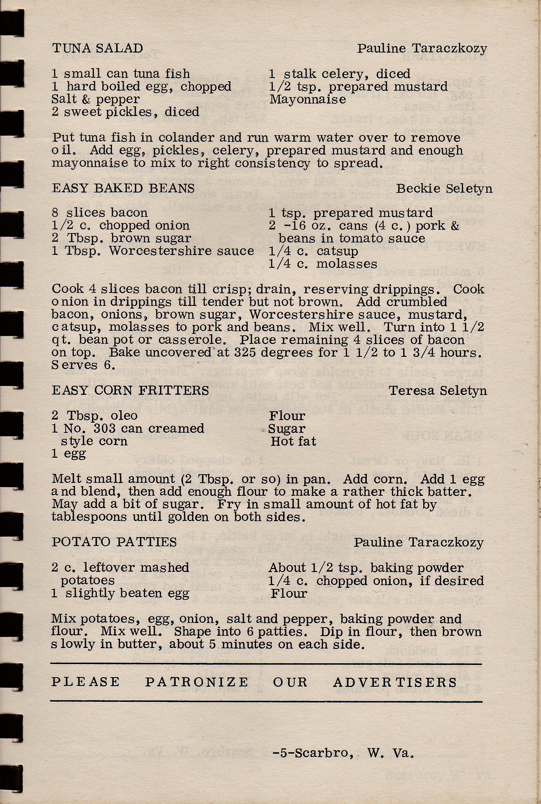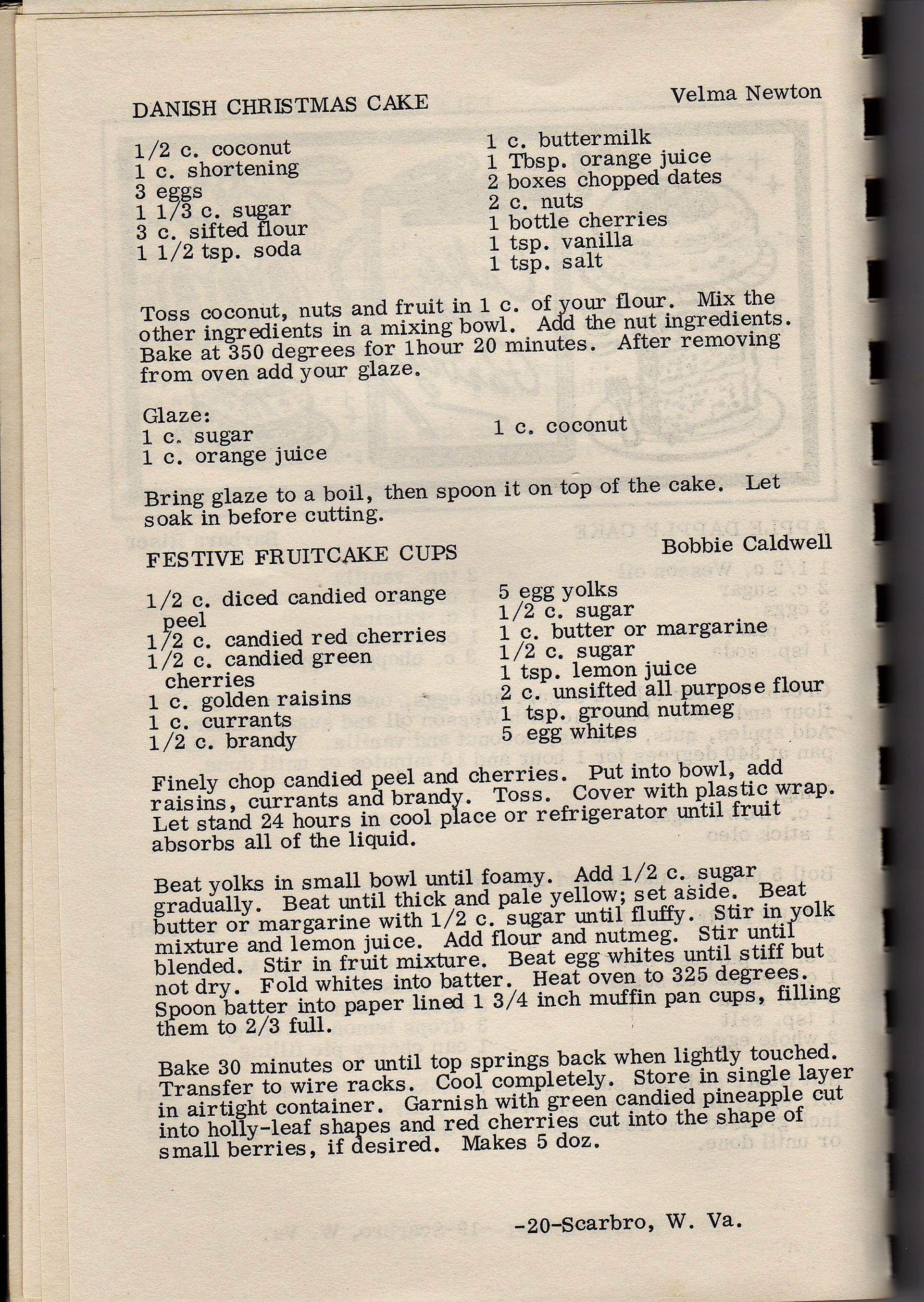 This cookbook has to be from when I was in (maybe) 5th/6th grade (1980-81). I received first communion in fifth grade and around that time I devoted all of my attention to the Catholic Church. I still attended youth group in Carlisle on occasion because it was at the end of my street and Mom sometimes liked to go (she converted to Catholicism I think in my 6th grade year). Both of my Grandmothers, my Mom and a wide range of family and friends have recipes in this cookbook. It was put together for the youth group of Carlisle Church of God, my Nana’s church.