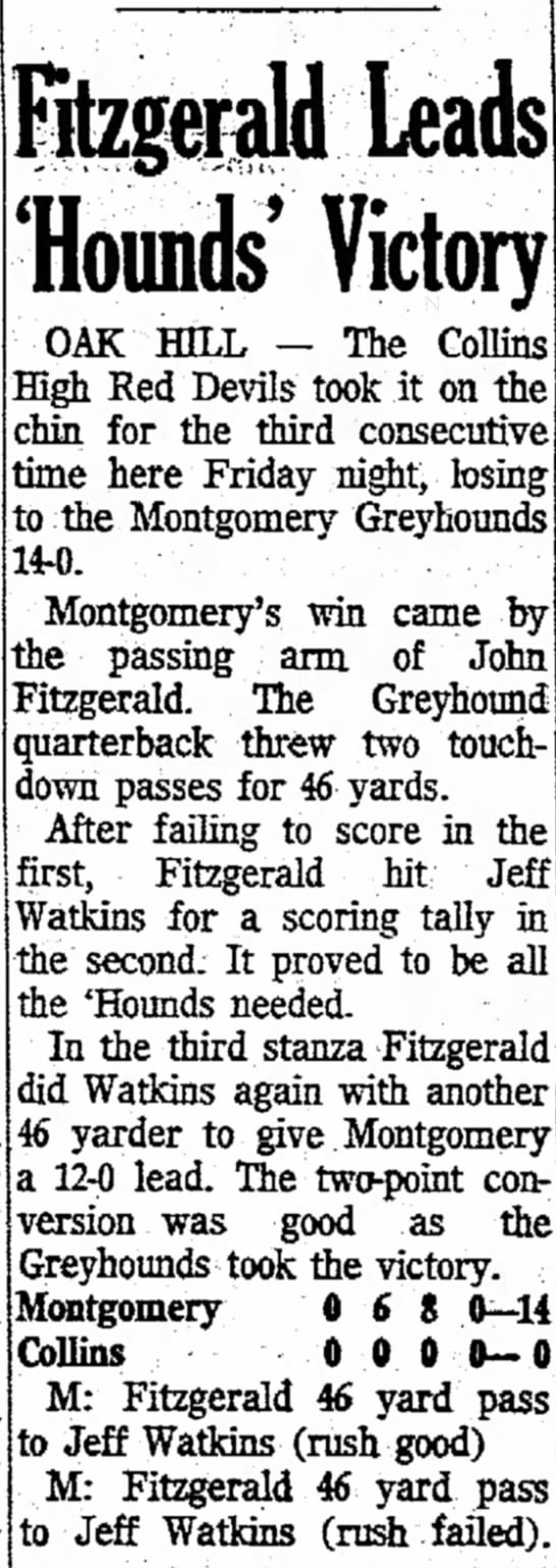 For today’s Friday Night Lights, I give you Collins Red Devils v Montgomery Greyhounds.
