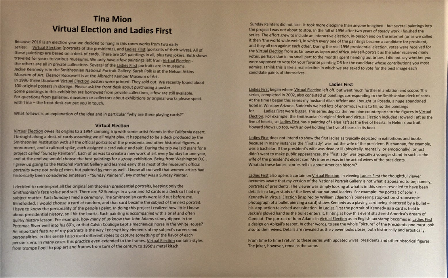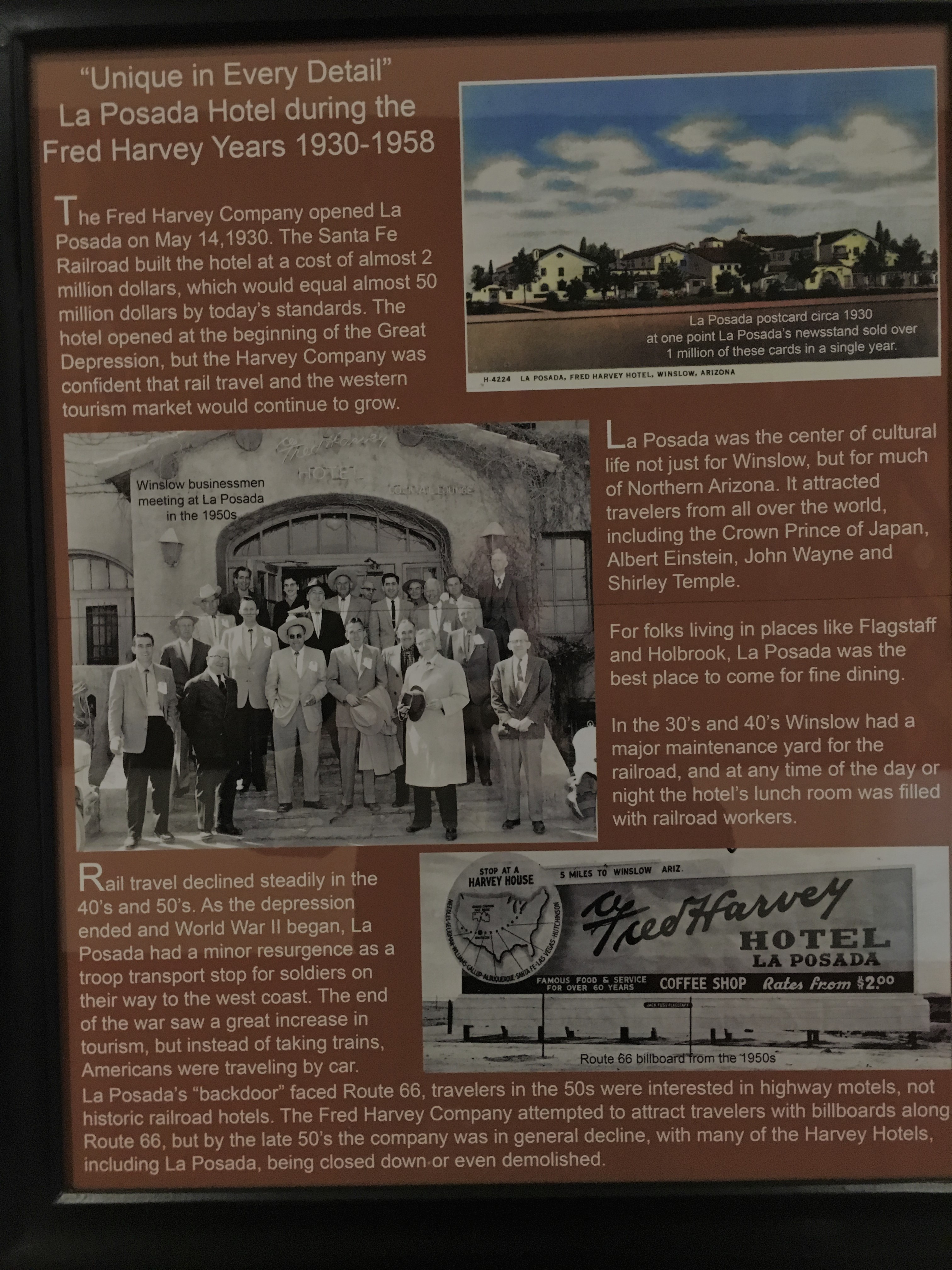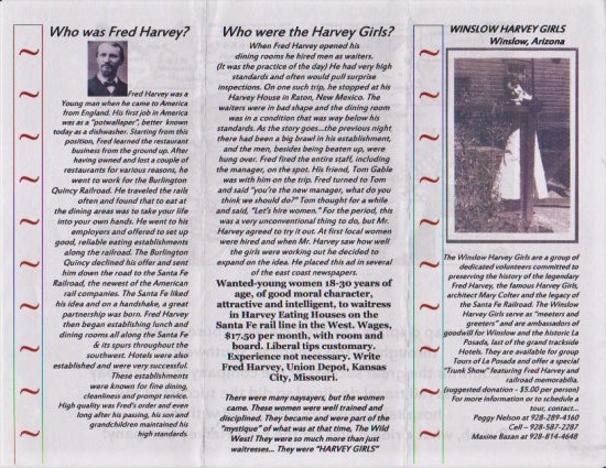 The hotel offers handouts about the establishment as well as additional information on the Harvey Girls. At check-in, you are given a self guided tour brochure with various places noted by number on the map. When you reach each numbered destination, there are plaques or information cards regarding some factoid on the hotel.