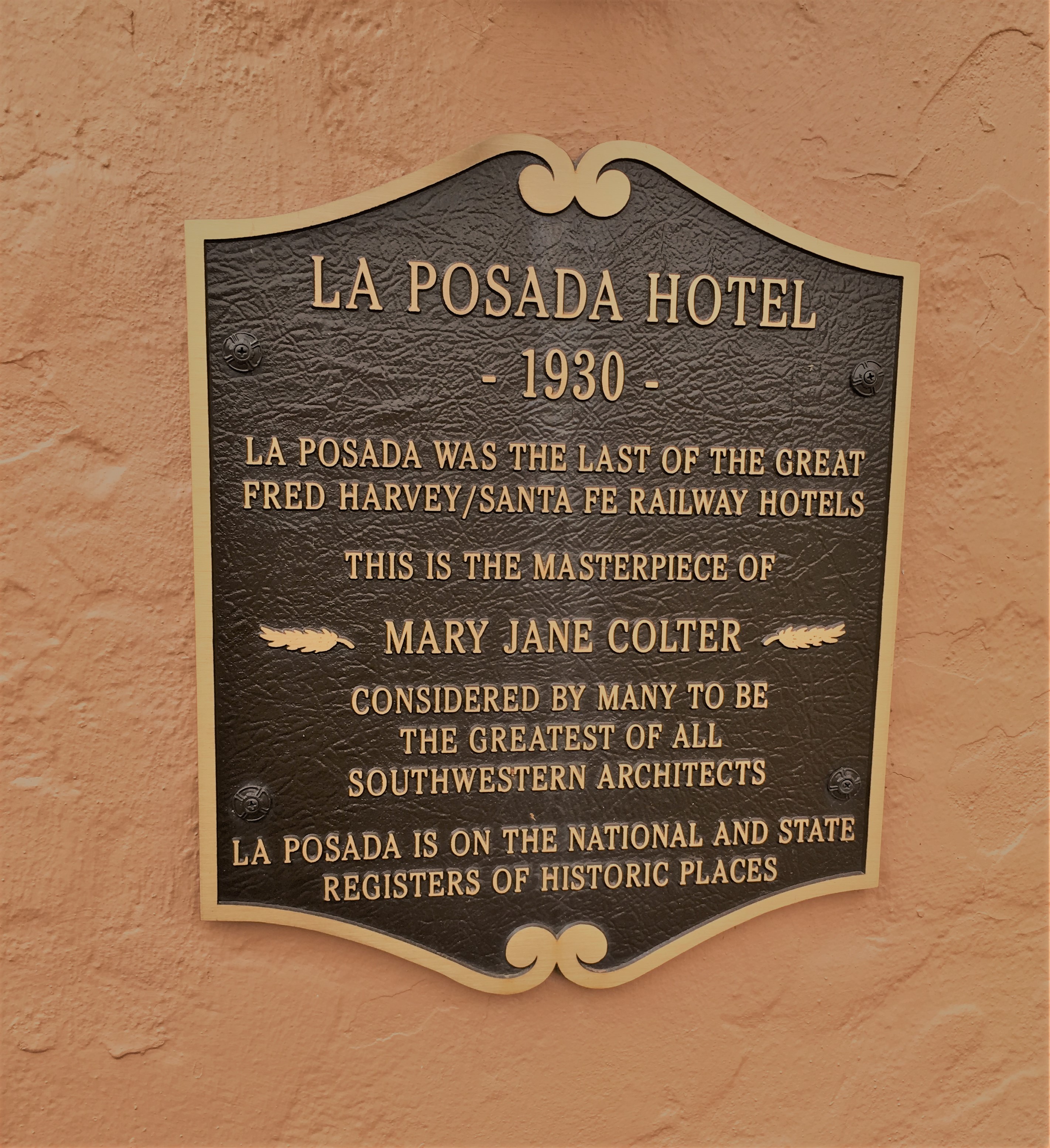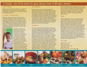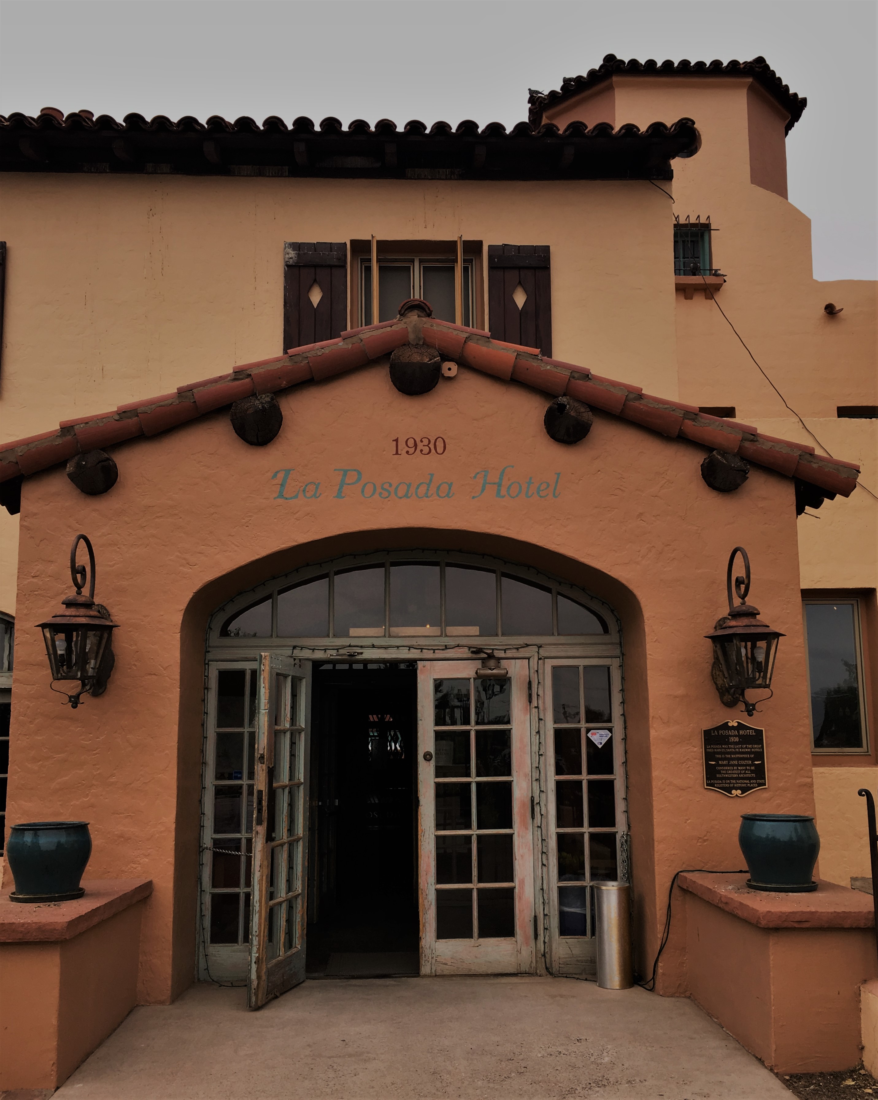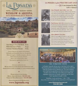 I used the National Parks website to research various areas of Rt 66 and attractions we might be interested in. Because I knew we would be visiting Winslow Arizona (yes, for the corner), I paid particular attention to the various places mentioned for that area. On the NPS site, it noted a hotel that is on the National Register for Historic Places, the La Posada Hotel. A quick Google search brought up their webpage and I knew immediately that THIS would be our first hotel stop on the road.