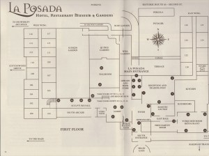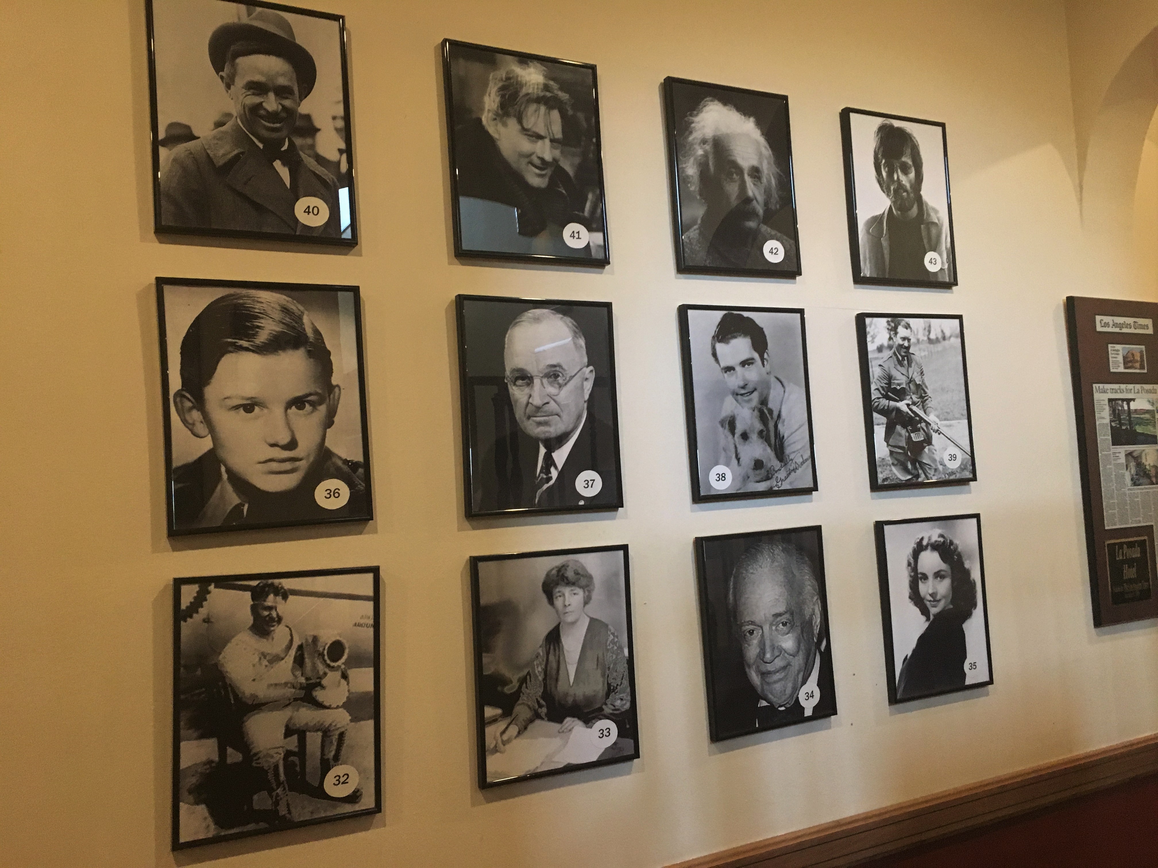 I genuinely loved this hotel and am thankful to the NPS site for mentioning it. Bobby slept in the morning after our arrival but I woke around 6AM and was soon out the door to wander the hallways and grounds and to take in the hotel in all of its glory. In its heyday, La Posada was frequented by a number of famous people (scientists, celebrities, politicians, pilots, heroes, all sorts of honored guests). Their photos line the walls and rooms are named after famous guests.