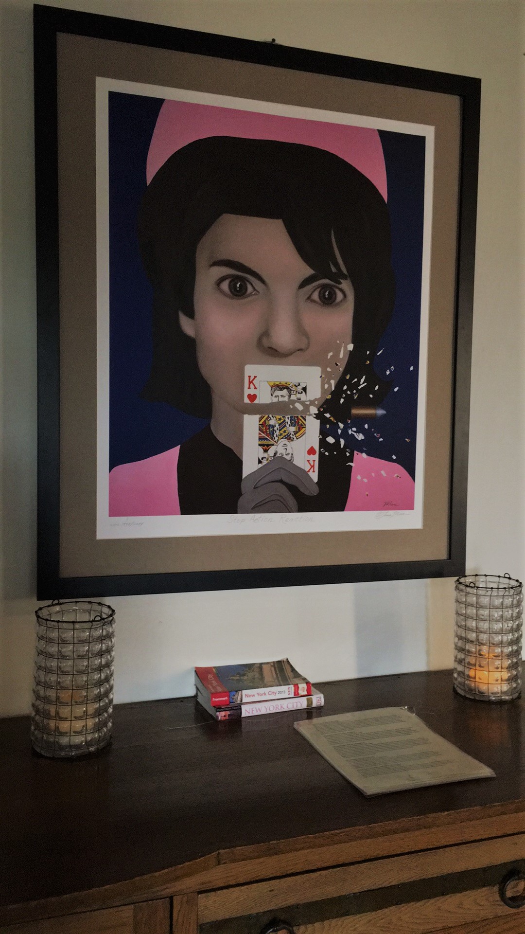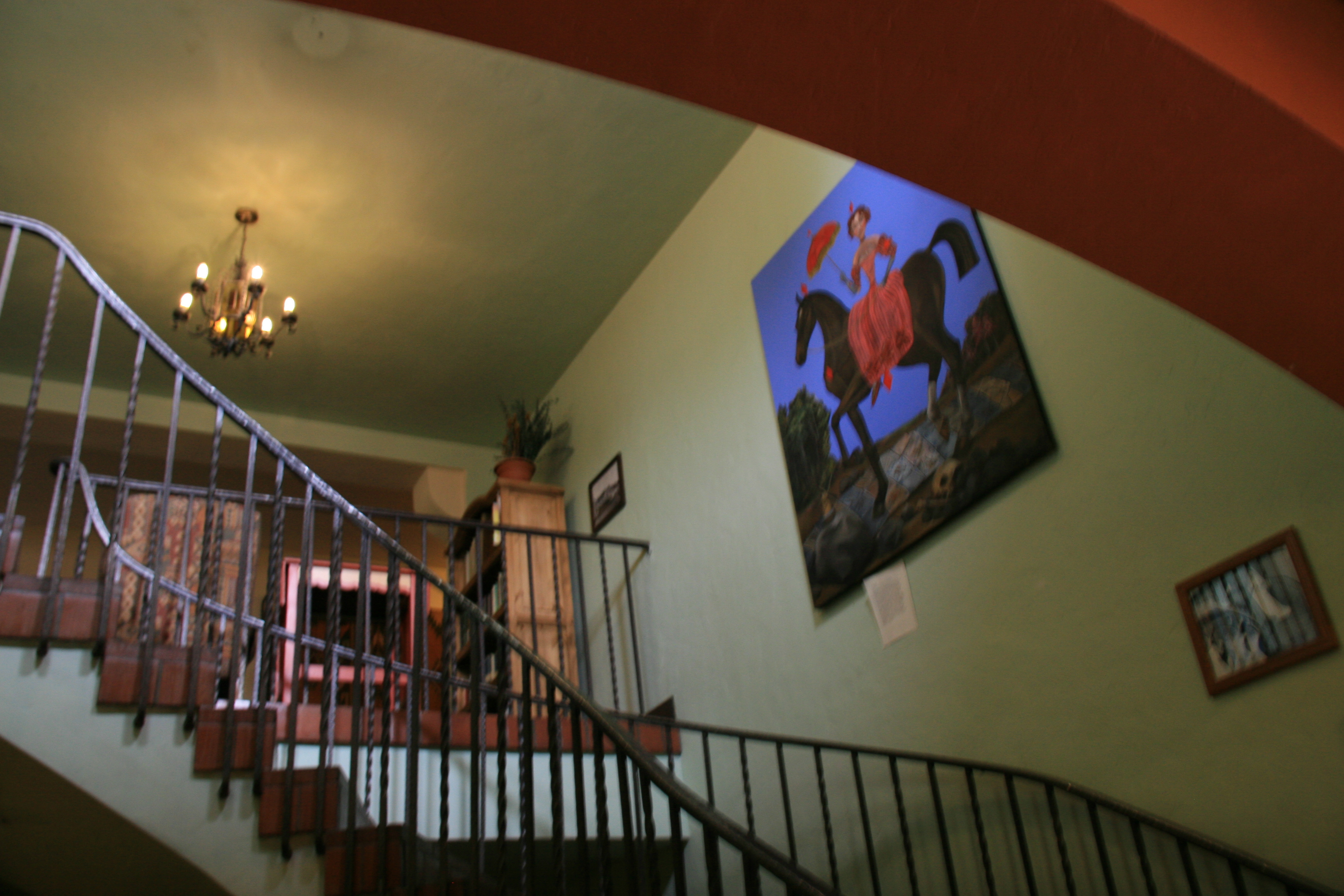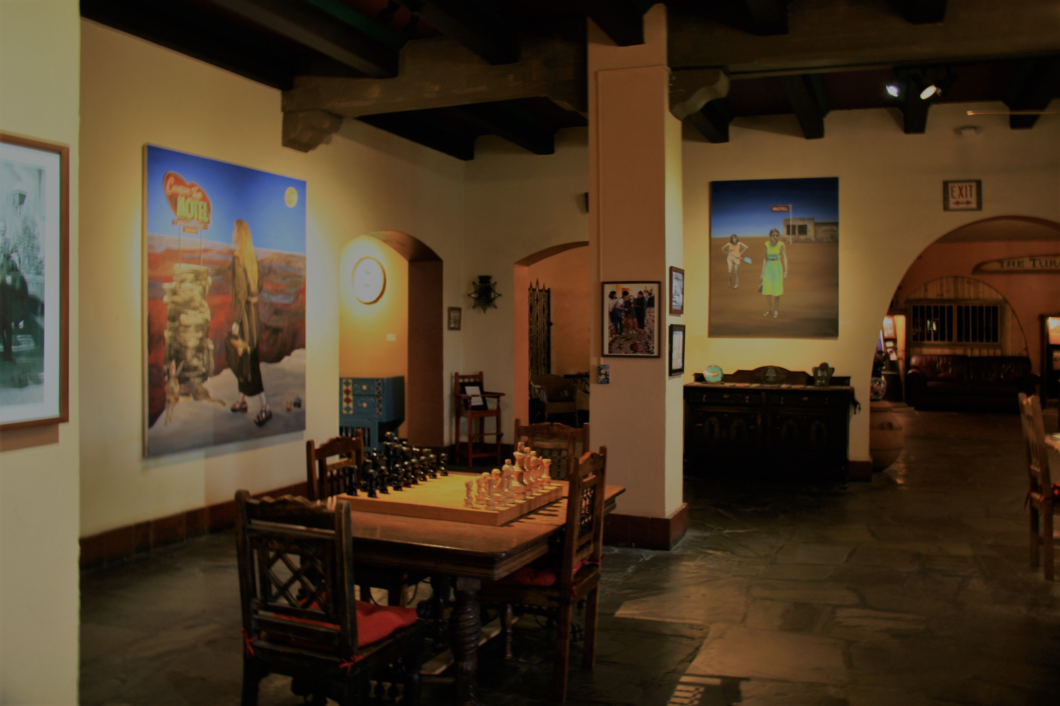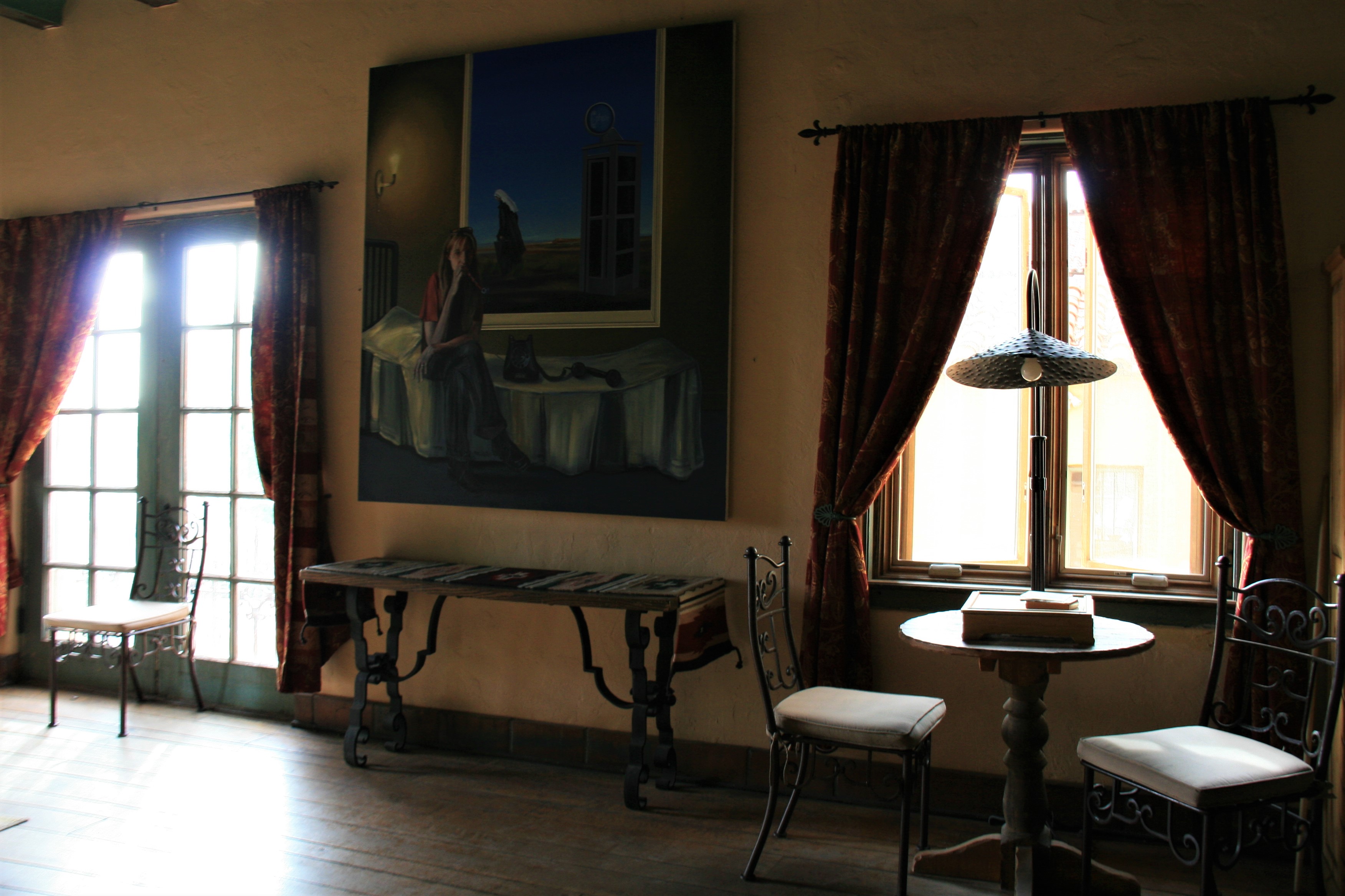 The artwork of Tina Mion could be seen in almost every room, stairway and hall. I had seen her Wizard of Oz painting while reading political commentary once and had no idea that her work would be here. The tones and colors of her photos were a nice pop from the earth tones of the walls throughout the establishment. Other artists were represented in the hotel as well, but her work was featured prominently. There was a small gallery of her work on the second floor. My favorite painting of hers is the one that turned out the most blurry (and did not have a small print for sale in the shop). It is titled: Nuns and Babushkas.