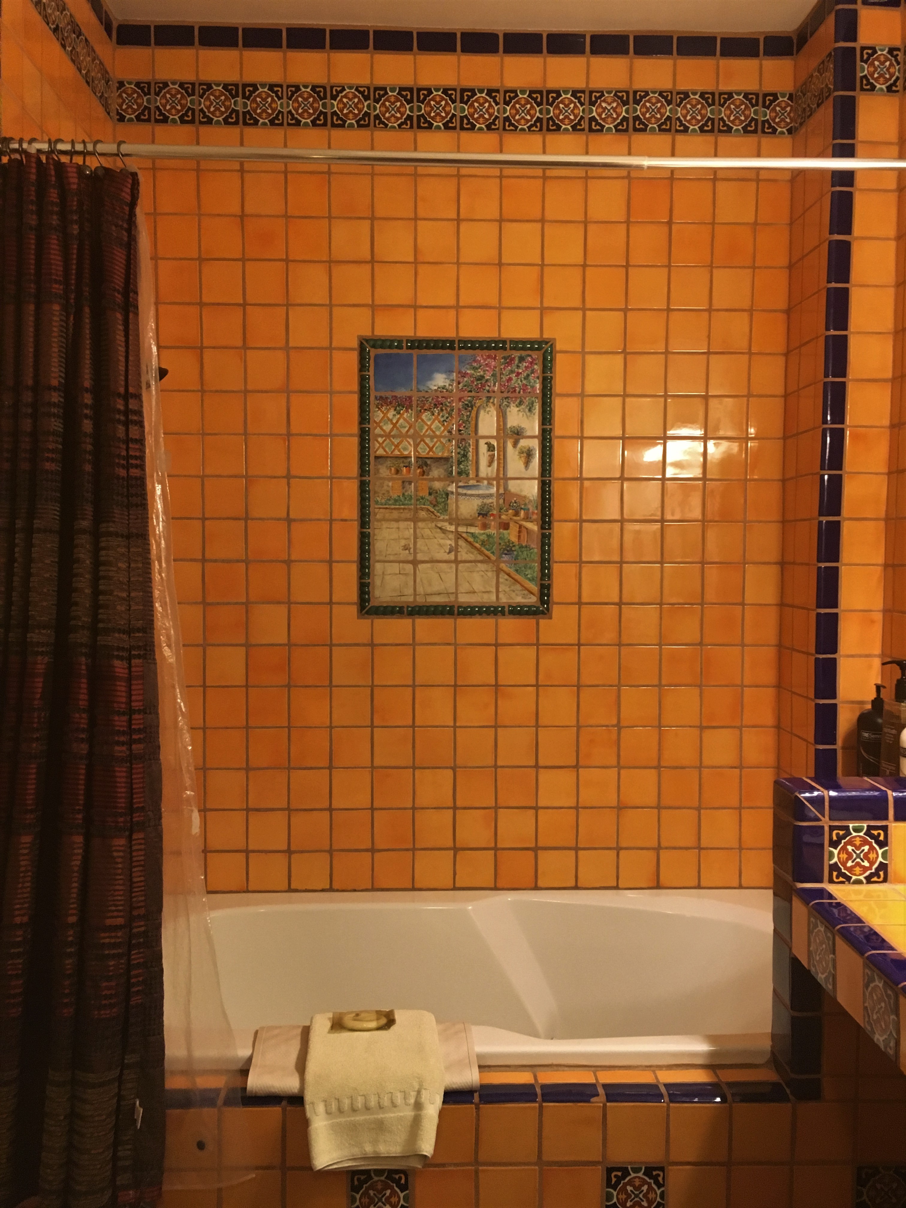 We checked into our room and it was so vivid with colors and tiles and art. We had a patio room on the first floor and the room had a glass door that opened to an outdoor seating area. You check-in within the gift shop. The staff were very warm and polite. There is coffee available and in the morning some light snacks.