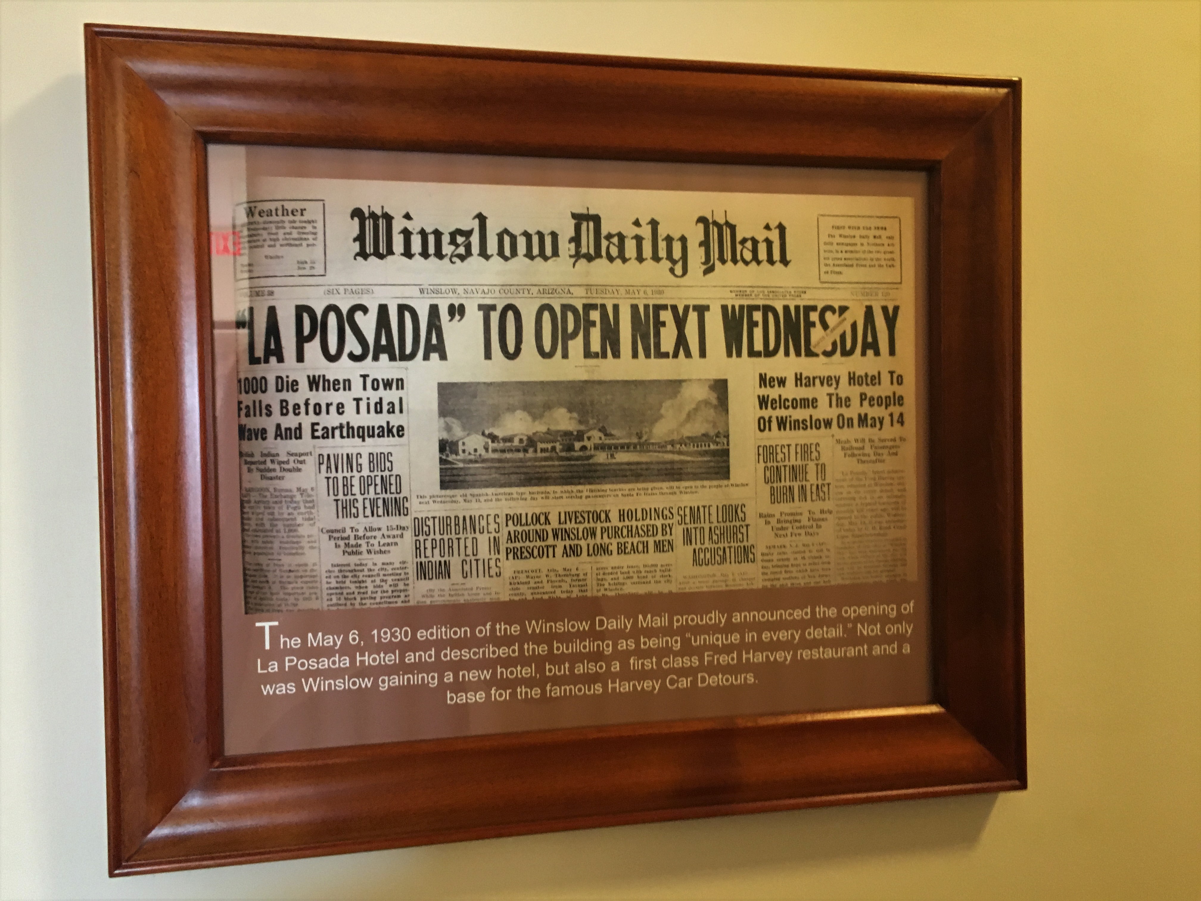 I found an online article on the newspapers website for the day the hotel was opened. I will post the clipping at the bottom (which is hard to read) but translate it below. The clipping is from the Casa Grande Dispatch on Thursday, 22 May 1930, Pg 8.