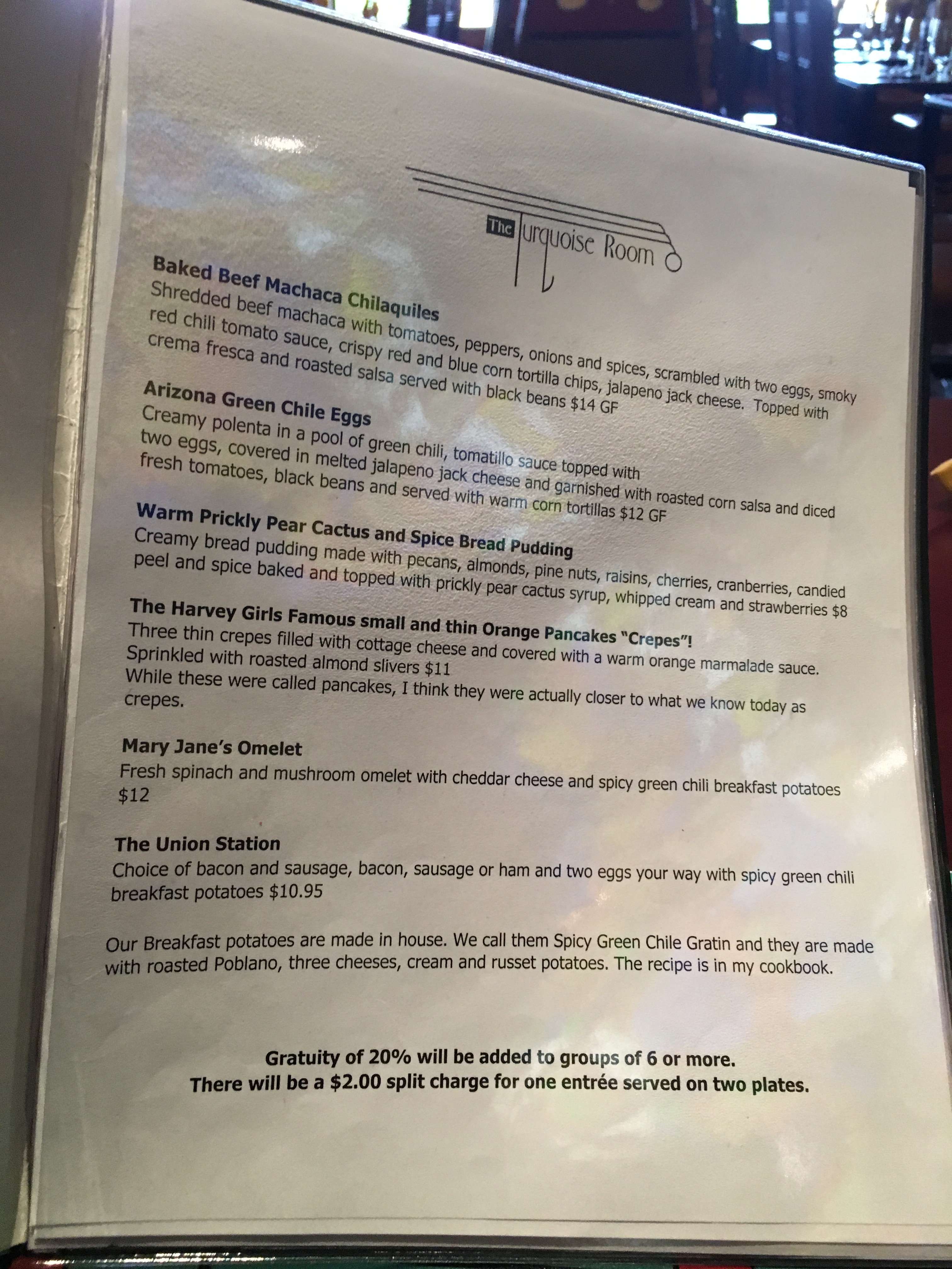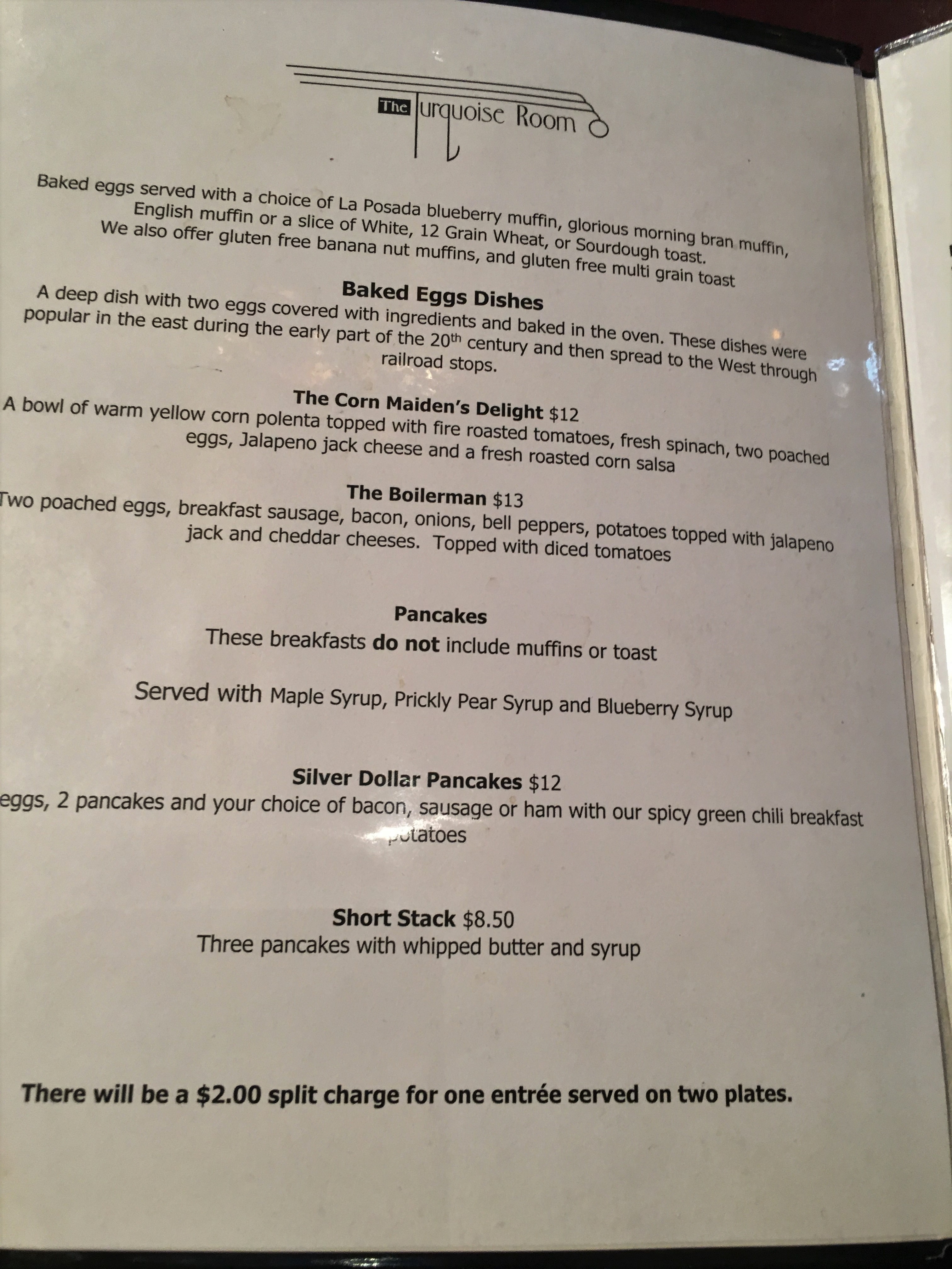 The next morning, we had breakfast downstairs in The Turquoise Room. I had a mimosa because we were on vacation, Bobby had an unleaded mimosa because he was driving. Because it was vacation and I was feeling more adventurous, I tried the prickly pear syrup on my silver dollar pancakes and it was simply delicious.