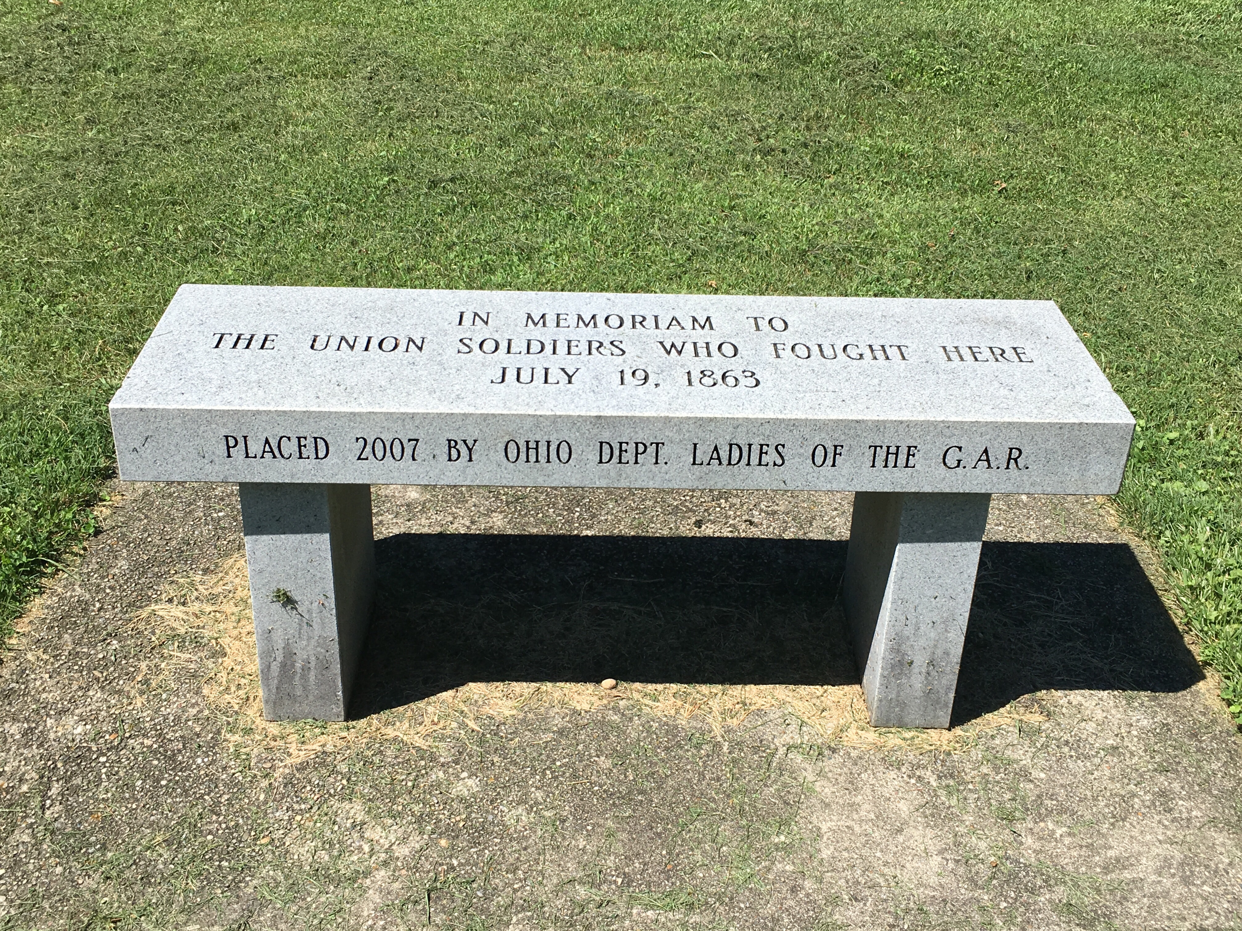 Although their website notes this is the only significant Civil War Battle fought in Ohio, a quick wiki search pulls up the Battle of Salineville. Salineville is mentioned in the above quoted section, however they call that one a running fight culminating in Morgan being surrounded and captured. Not sure if that is different than a battle and (if so) to what extent. This is a four acre park one quarter of a mile away is where McCook was killed in battle. The park is not actually located on the island but on the bank a short distance away.