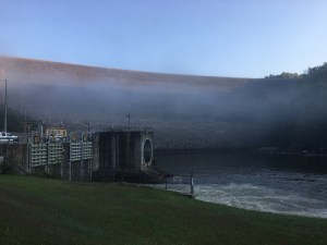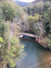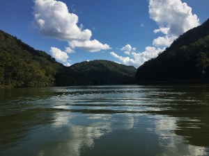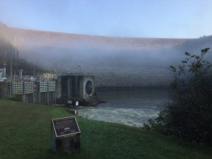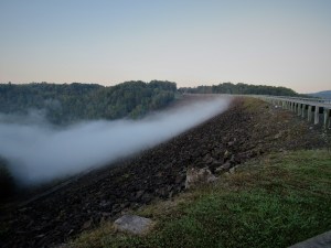 So Gad Dam backs up water to create Summersville Lake. It is 2280 feet long and 390 feet high. The lake covers 28,000 acres, including 60 miles of shoreline. During the fall, for six weeks, the Army Corps of Engineers release water to drop Summersville Lake to wintertime levels. For those six weeks, thousands of people will jump in boats and paddle furiously through rapids created by the water’s release. It is known as Gauley Season. In 2016 there was a huge 50th Anniversary event held at the dam. There were skydivers and everything. I might know a couple of them… Per the local newspaper: “The economic impact of the dam and lake are plentiful. It attracts tourists who stay in hotels and eat in restaurants. According to Toby Wood, resource manager for the lake, in 2012, the latest data available, within a 30-mile radius of the lake visitor spending topped $31 million, and of that, $14.8 million was in sales. The multiple employment of the lake is 328, he said.”