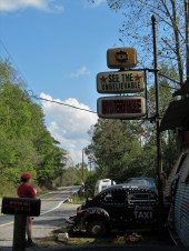 Judy and I share a love of ancestors, genealogy and not being afraid of cemeteries. On Saturday we would visit two different cemeteries where my roots are (literally) planted. (Fun genealogy trivia: the difference between a cemetery and a graveyard – a cemetery is privately owned by a business whereas a graveyard is a burial site adjacent to a church. So if it is noted in a genealogical record that someone is buried in a graveyard, you might want to check the church records of the adjacent church for baptismal or marriage records.) High Lawn Memorial is where my Parents are buried. Judy helped me locate a few other graves and we found a register of graves inside the office of the gravediggers (not an affectionate nickname, I generally despise the people who run this cemetery for numerous reasons I will not go into here). Later in the day we would wander about Hilltop Cemetery trying to find a great grandfather but instead finding the childhood memory Jack Crumb, the alligator wrestler who lived just below my parents’ house and who used to throw things from his porch at kids walking by his porch. Good seein’ ya Jack.
