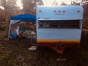 For the first time (I think ever) I did not have an itinerary to follow (not even one in my head). I thought we would go where the wind blew us. I am so very happy that I chose not to overthink the visit. The organic flow of where we went and experiences we had were amazing. My friend Steve allowed us to park Eddie, my camper, next to his barn and use his electricity. The resort I used to work for had a shower house less than a half mile from where we parked. I arrived extra early on Friday so I could “stage” our campsite. See, Judy had never camped in an actual camper. I, on the other hand, love to glamp at every possible opportunity. Seeing as it was now October, I would be able to throw in a couple of Halloween decorations and lights. I also picked up a portable fire pit for Eddie. Many thanks to Mean Jen for helping me set up camp and for putting the pit together. (See, she isn’t always mean…)