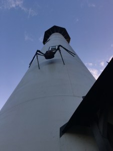 Because of an unfortunate wind turbine transportation accident, Summersville can now boast having their very own lighthouse! Which, at that time of year, was decorated accordingly!