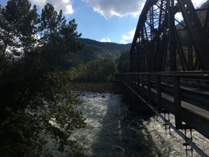 We then made our way to the train station in Thurmond, stopping at one of my favorite place on earth – the waterfall. A lot of my serious younger thinking was done while looking at the water rage over those rocks. There is a bit more trash thrown around and the water path seems to have changed over the decades. But the soothing sound of roaring water still holds the ability to put me at ease.
