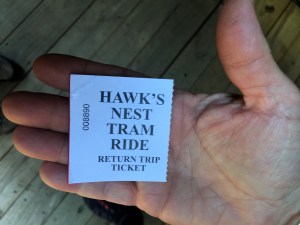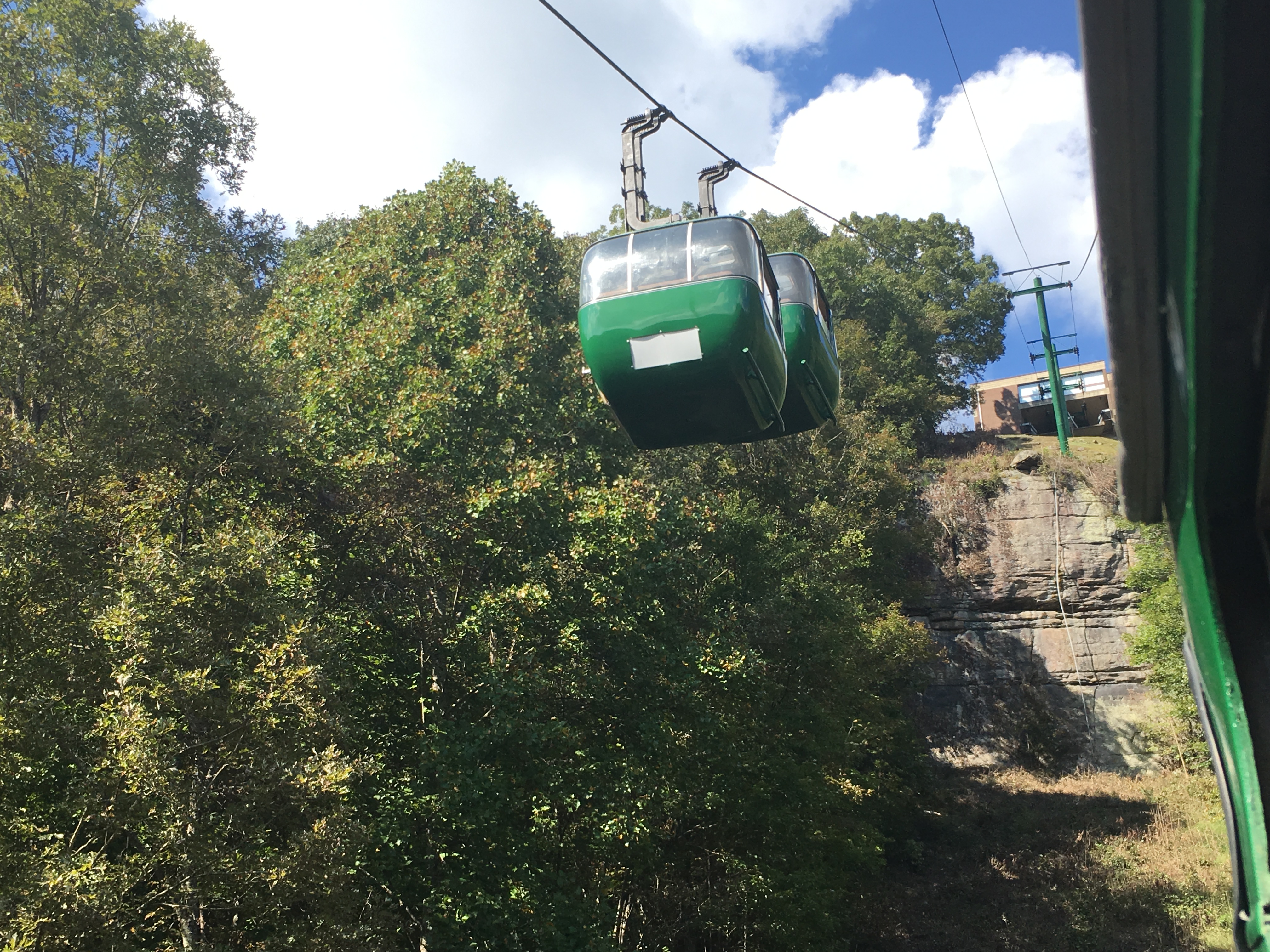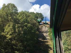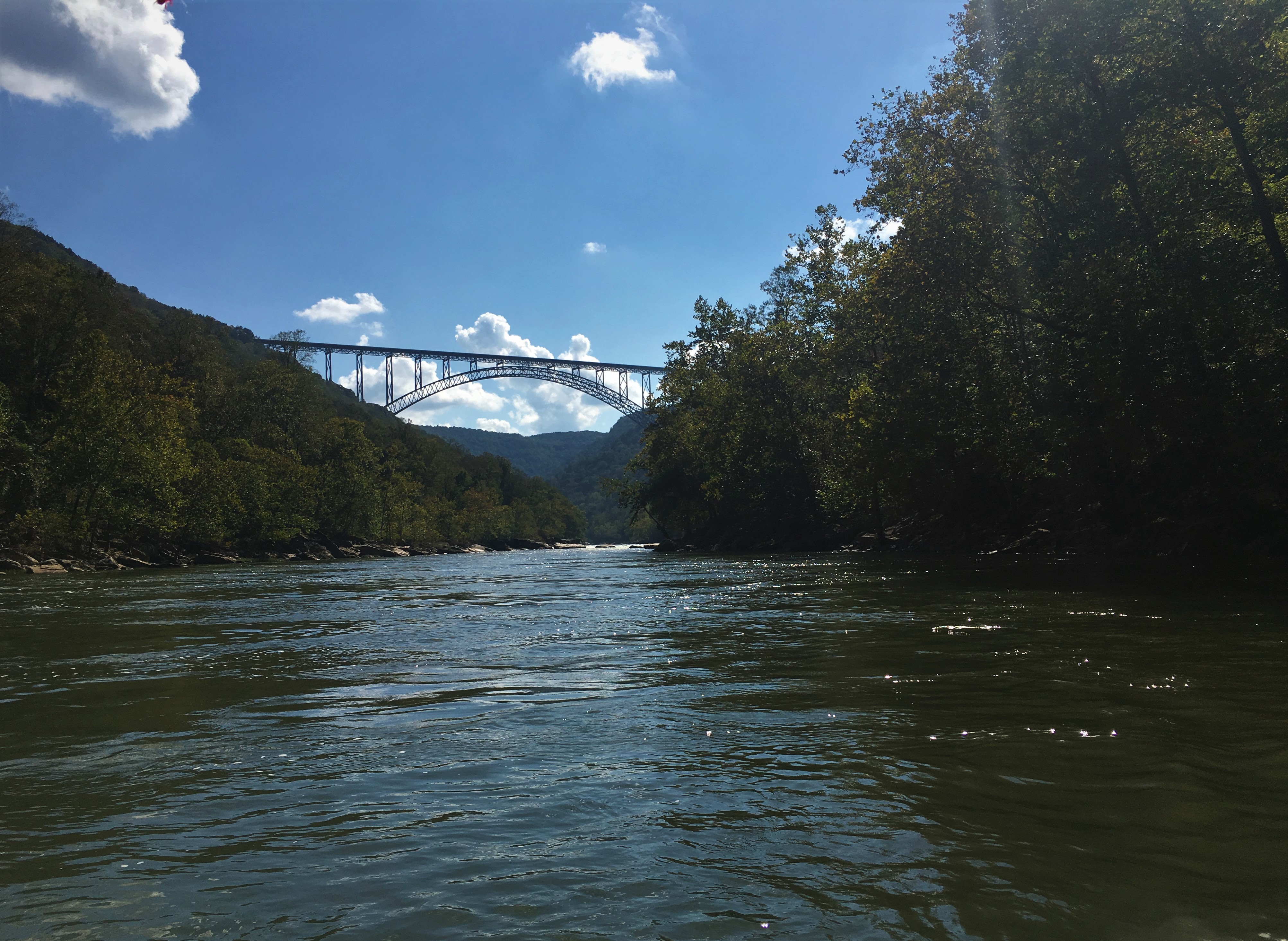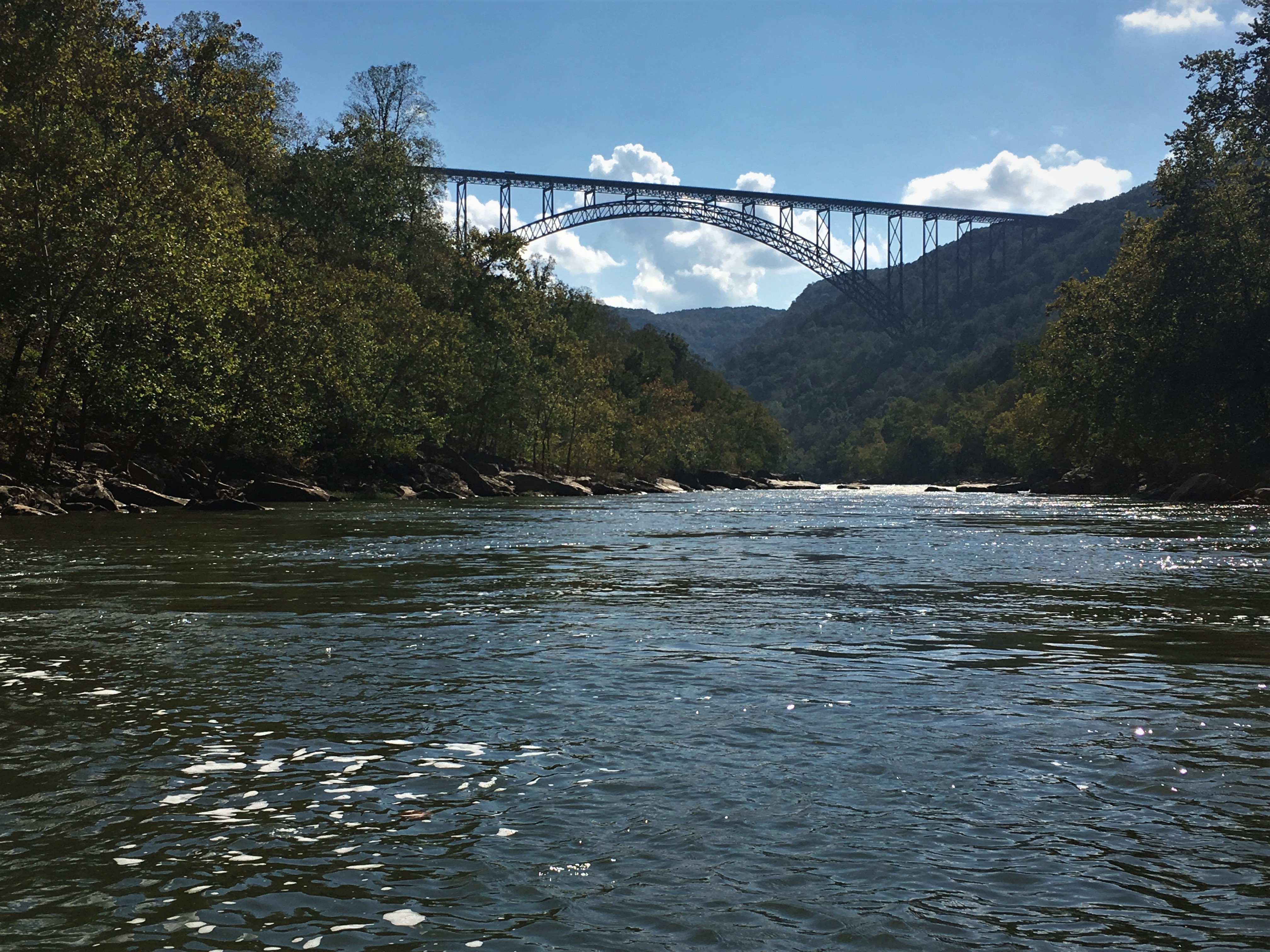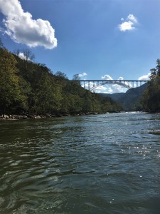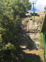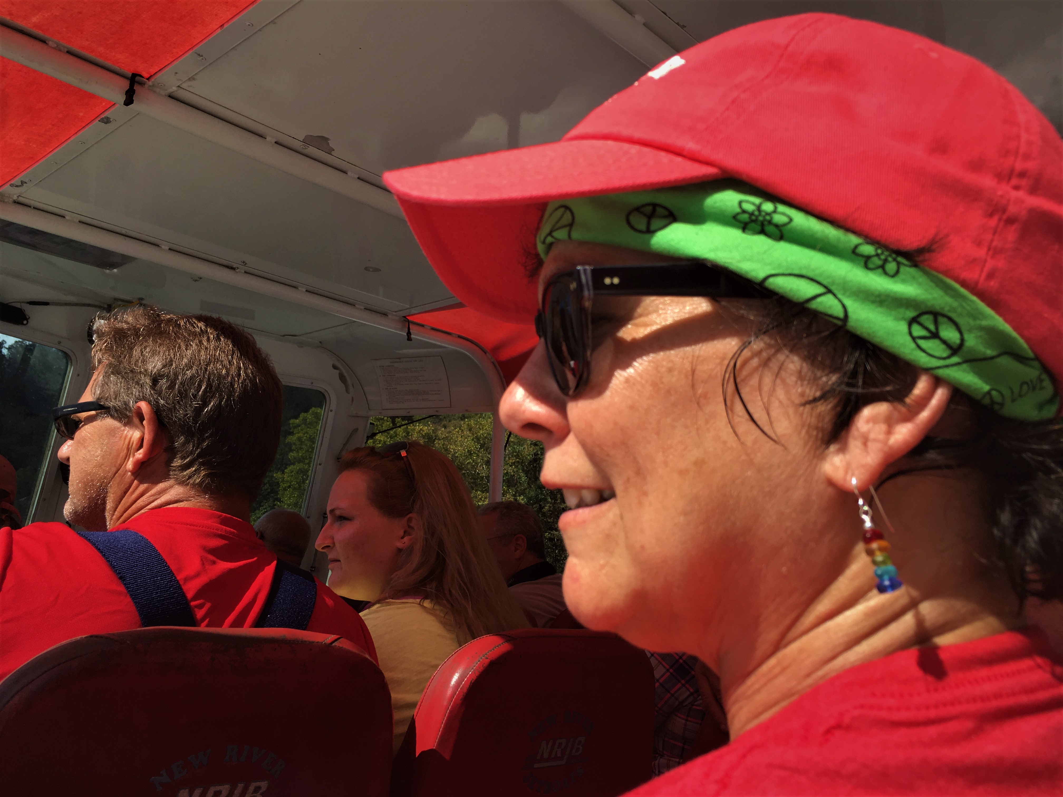 We made it to Hawks Nest and Judy purchased tickets for the tram to the bottom of the gorge where we would board a sight seeing boat. Once we reached the bottom we realized that the tickets were still in the tram! After a comedy of errors, and tickets in hand, we grabbed our seats on the boat. Although it was an entertaining ride, full of gorge splendor, we both would have preferred the boat to not smell like piss. Ugh! Once we rounded the bend and the NRG Bridge stood before us, it made the olfactory faux pas more bearable.