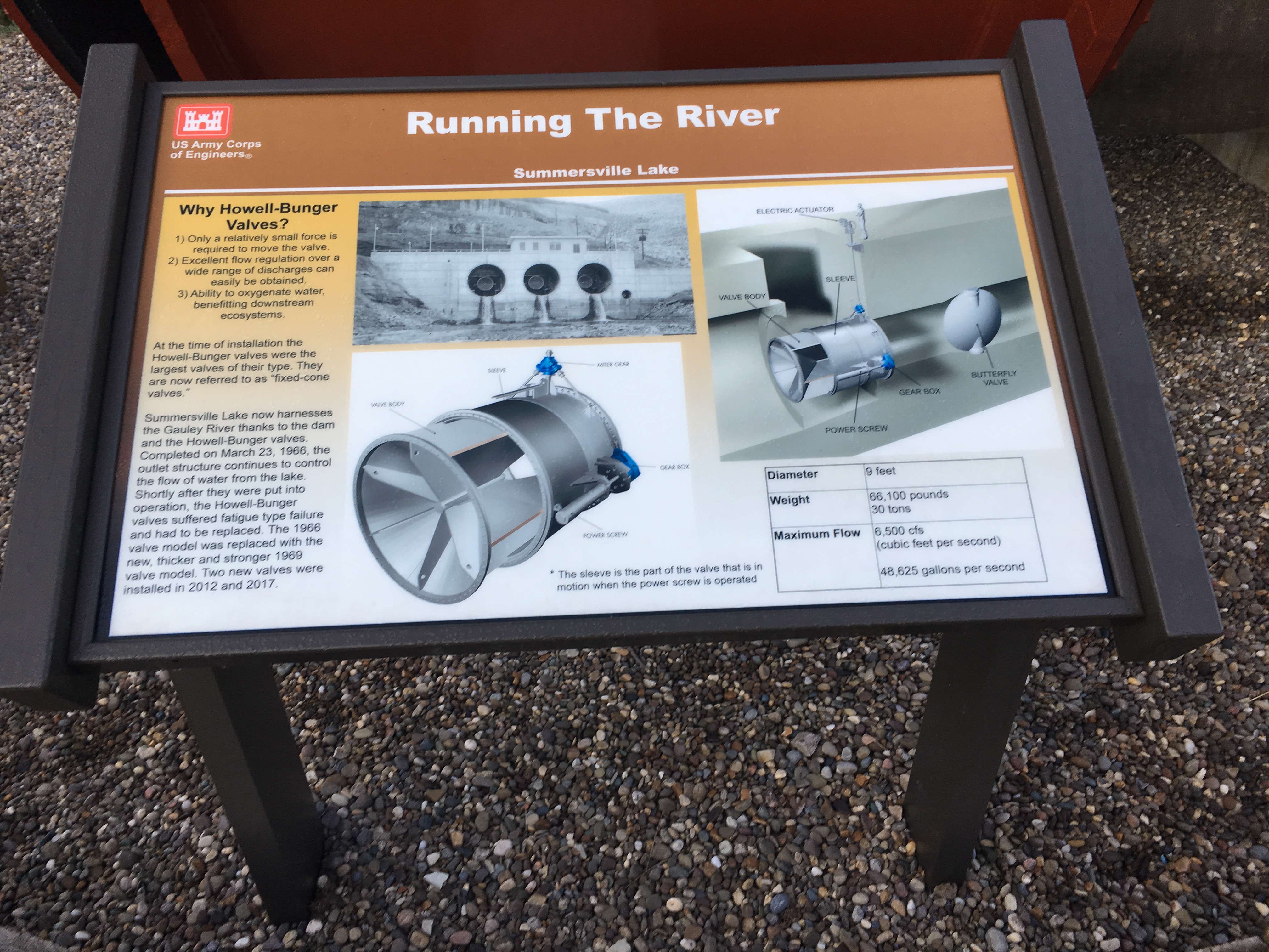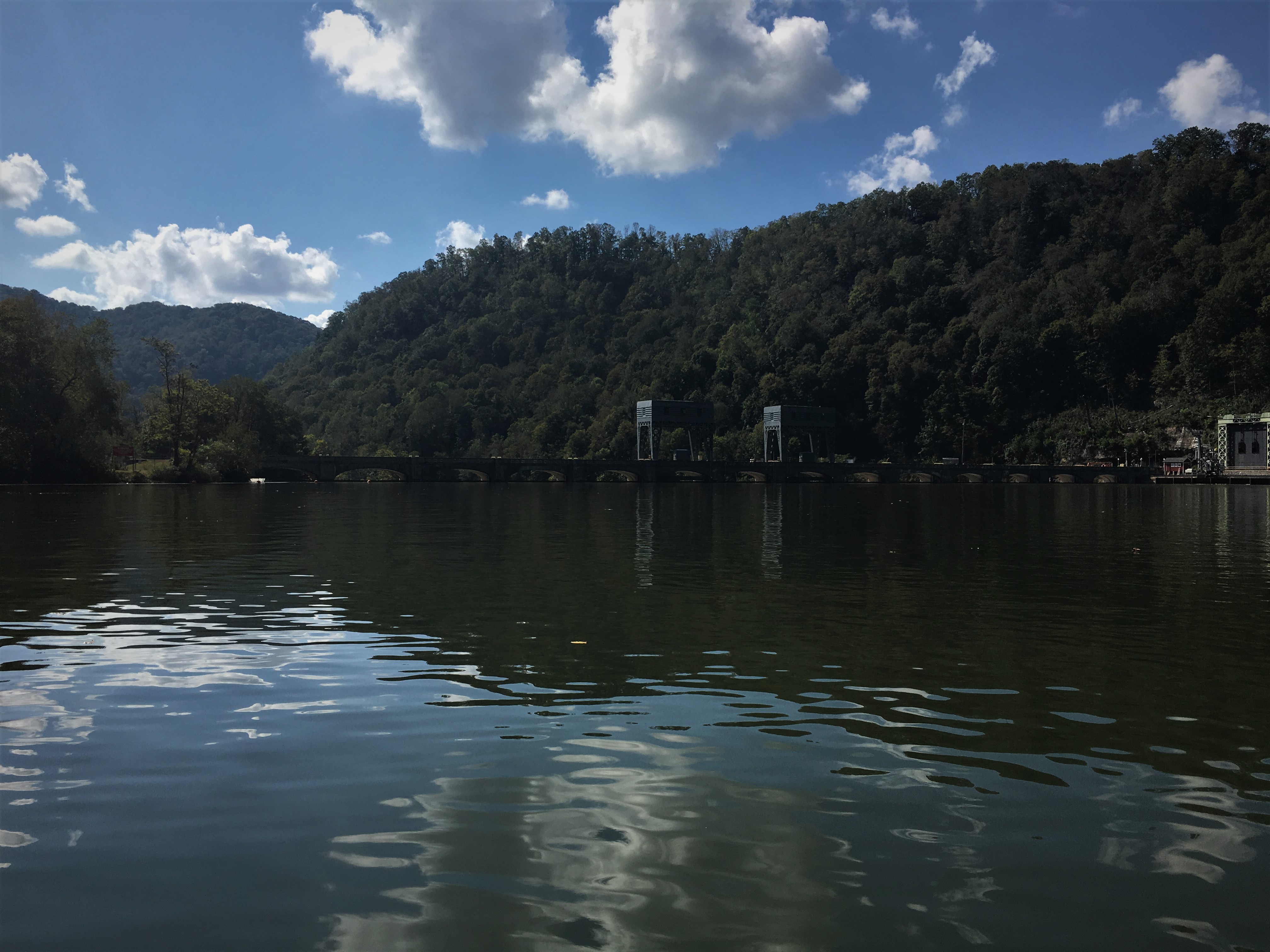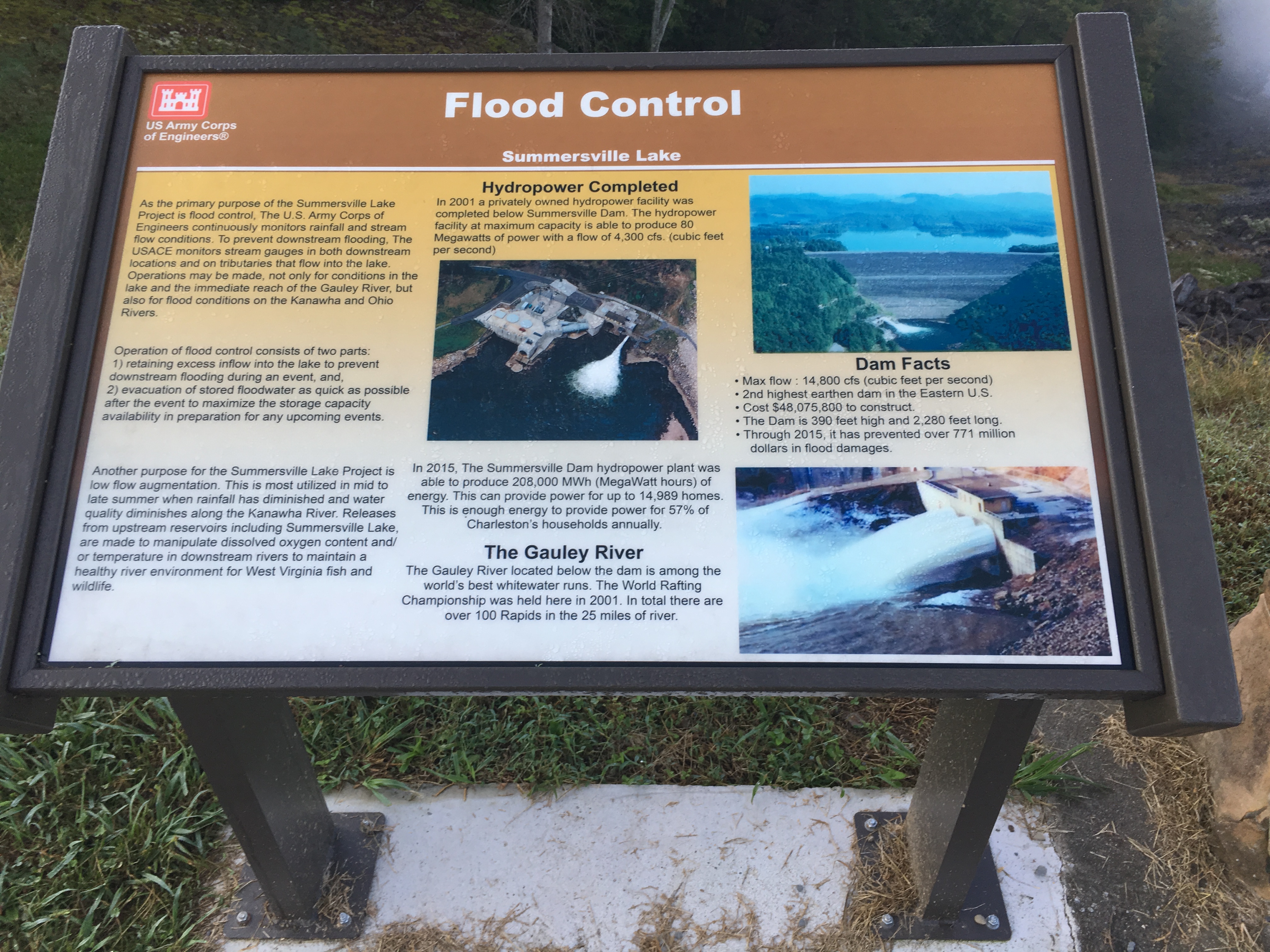 So Gad Dam backs up water to create Summersville Lake. It is 2280 feet long and 390 feet high. The lake covers 28,000 acres, including 60 miles of shoreline. During the fall, for six weeks, the Army Corps of Engineers release water to drop Summersville Lake to wintertime levels. For those six weeks, thousands of people will jump in boats and paddle furiously through rapids created by the water’s release. It is known as Gauley Season. In 2016 there was a huge 50th Anniversary event held at the dam. There were skydivers and everything. I might know a couple of them… Per the local newspaper: “The economic impact of the dam and lake are plentiful. It attracts tourists who stay in hotels and eat in restaurants. According to Toby Wood, resource manager for the lake, in 2012, the latest data available, within a 30-mile radius of the lake visitor spending topped $31 million, and of that, $14.8 million was in sales. The multiple employment of the lake is 328, he said.”