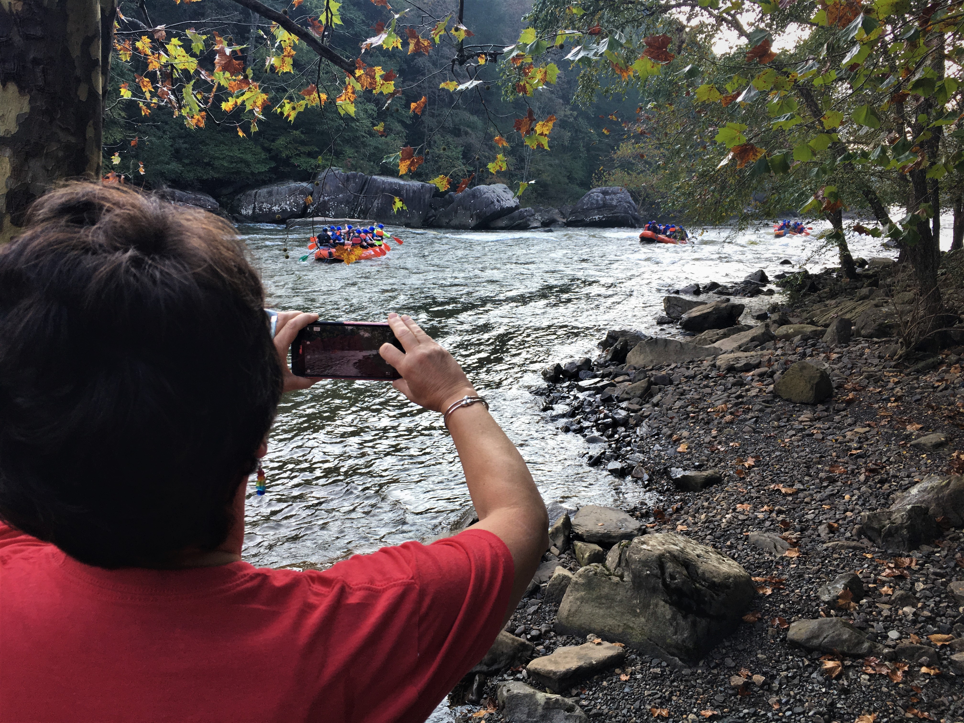 On Sunday we woke with the dawn and I apologized to Judy for not taking her rafting but I wanted to fully enjoy the short amount of time we would share in FayCo. But, with rafting, my hearing impairment would compromise the amount of chatter we could share for almost an entire day. I really had wanted to show her what the dam and the rafting experience looked like. I sat up straight in bed and said “Let’s go to Summersville! Right now while the boats are still going in the water!” And, with a quick brushing of teeth, we were off like a shot!