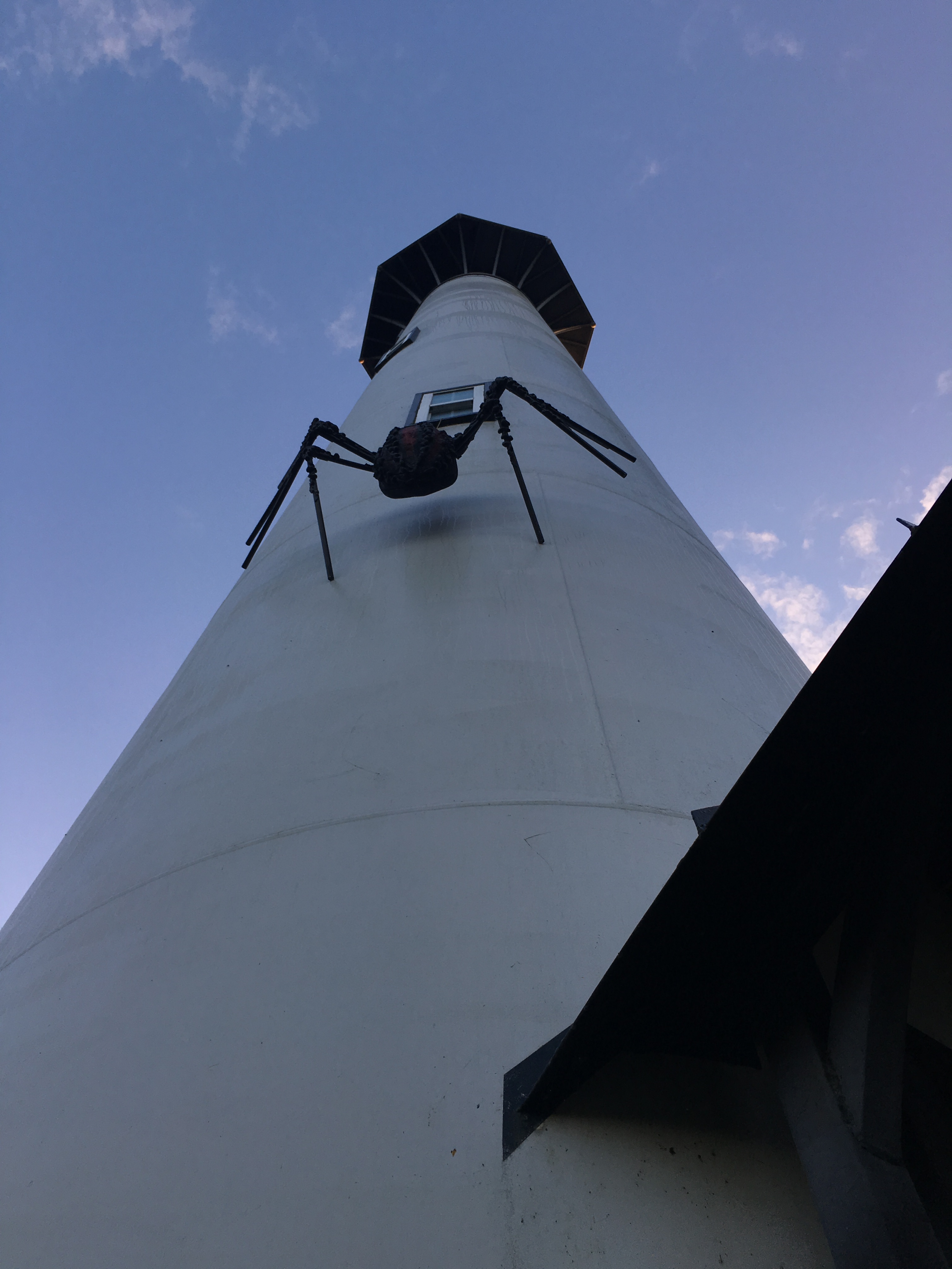 Because of an unfortunate wind turbine transportation accident, Summersville can now boast having their very own lighthouse! Which, at that time of year, was decorated accordingly!
