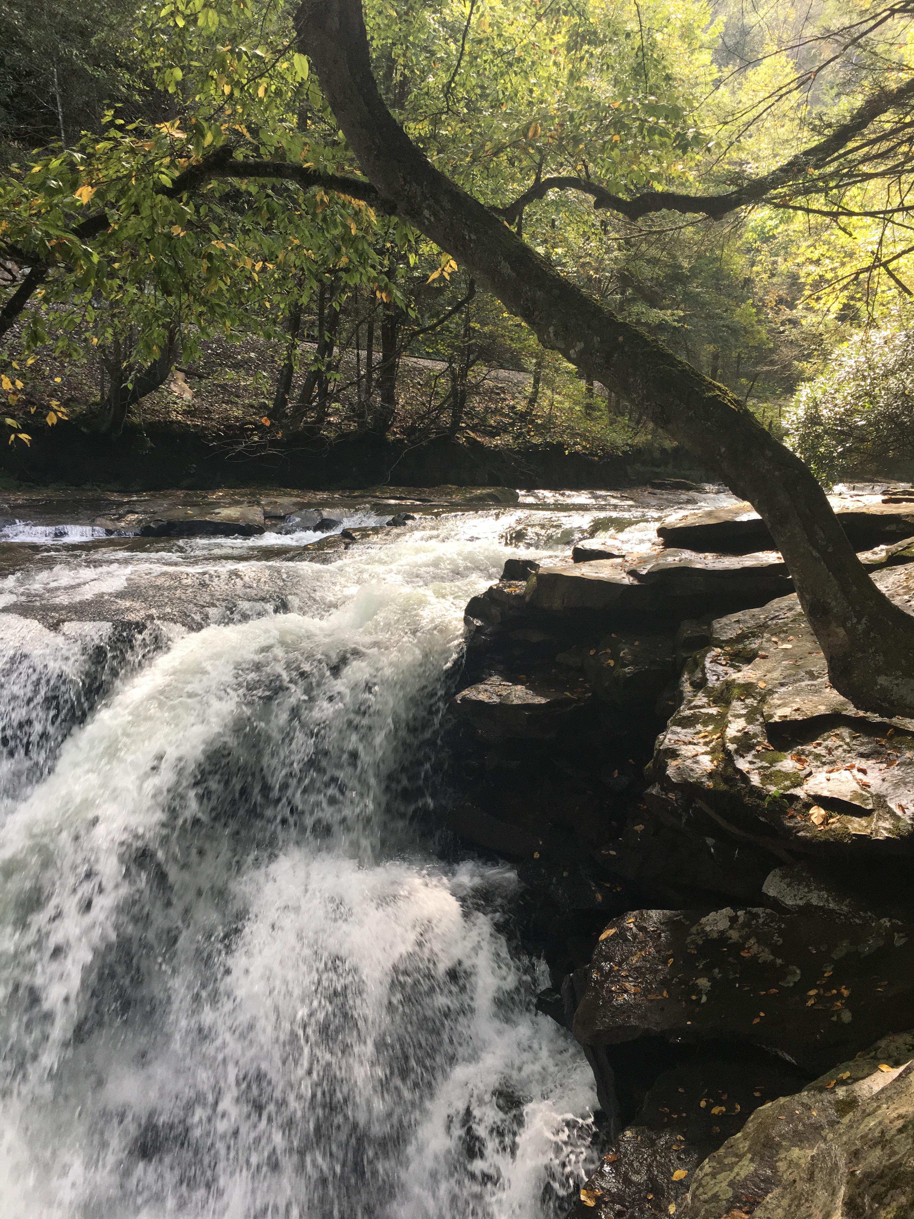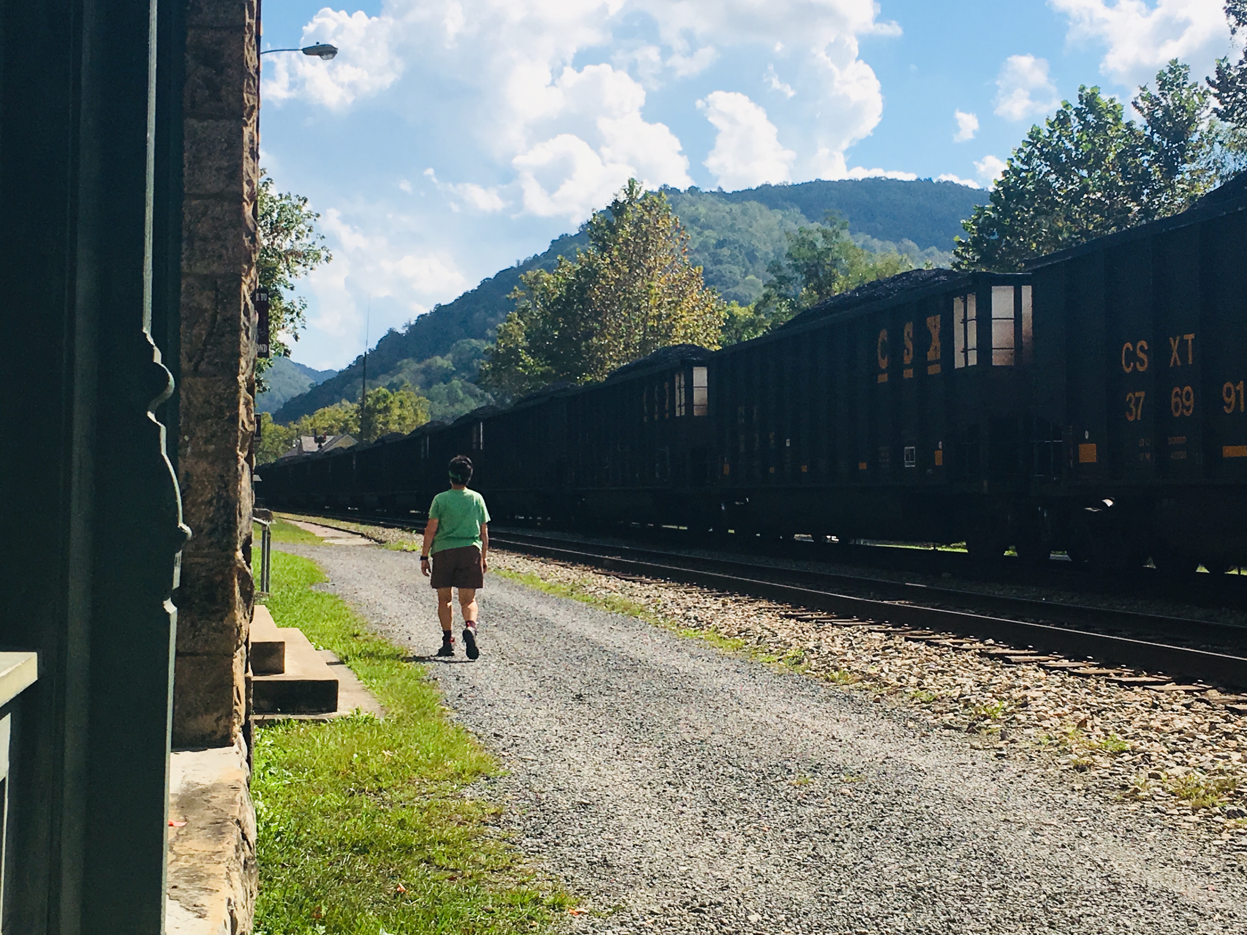 We then made our way to the train station in Thurmond, stopping at one of my favorite place on earth – the waterfall. A lot of my serious younger thinking was done while looking at the water rage over those rocks. There is a bit more trash thrown around and the water path seems to have changed over the decades. But the soothing sound of roaring water still holds the ability to put me at ease.