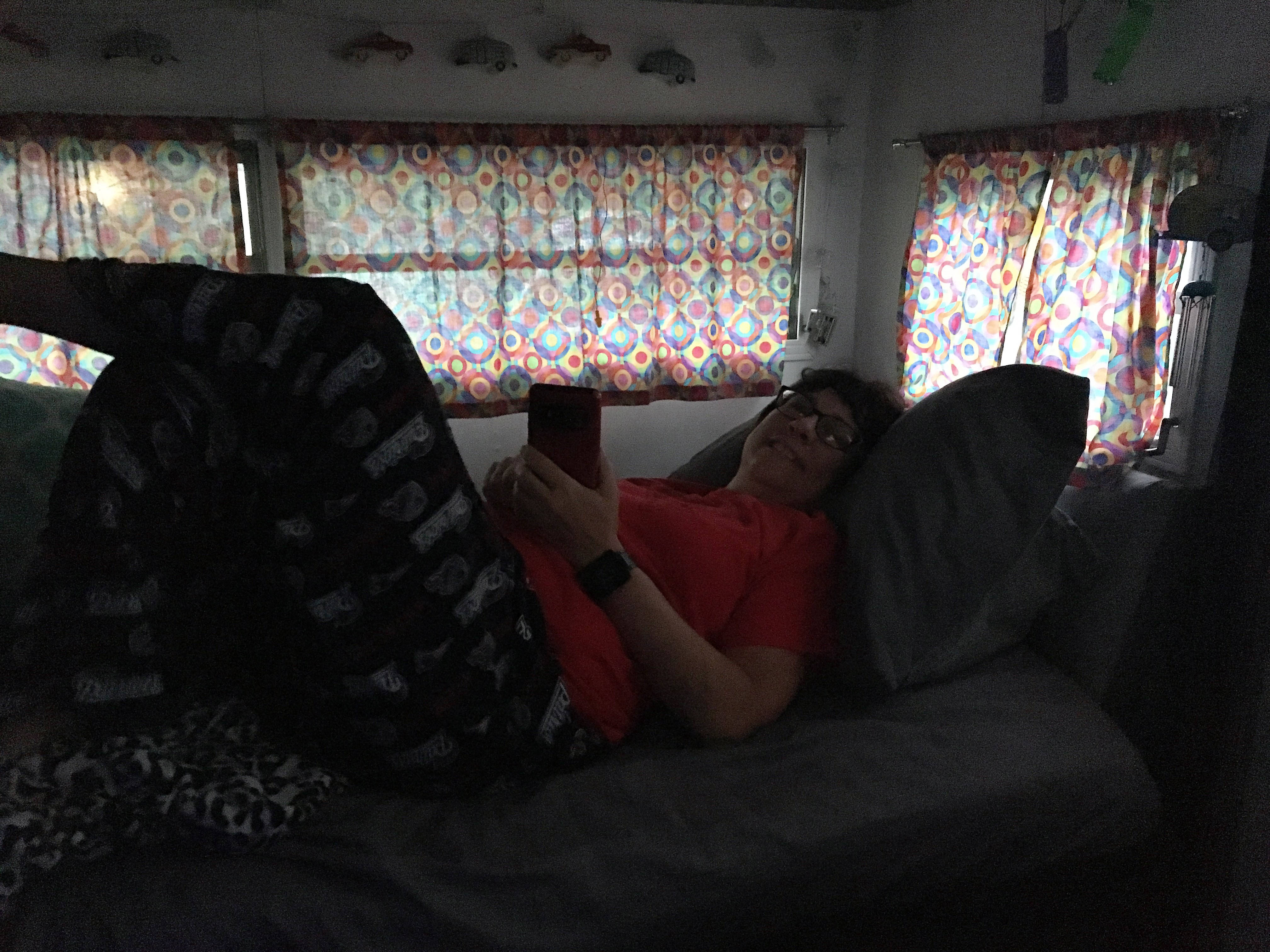 For the first time (I think ever) I did not have an itinerary to follow (not even one in my head). I thought we would go where the wind blew us. I am so very happy that I chose not to overthink the visit. The organic flow of where we went and experiences we had were amazing. My friend Steve allowed us to park Eddie, my camper, next to his barn and use his electricity. The resort I used to work for had a shower house less than a half mile from where we parked. I arrived extra early on Friday so I could “stage” our campsite. See, Judy had never camped in an actual camper. I, on the other hand, love to glamp at every possible opportunity. Seeing as it was now October, I would be able to throw in a couple of Halloween decorations and lights. I also picked up a portable fire pit for Eddie. Many thanks to Mean Jen for helping me set up camp and for putting the pit together. (See, she isn’t always mean…)