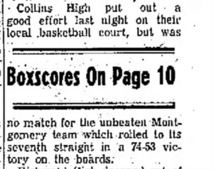 Program 2: January 19, 1960 Collins “Red Devils” versus Montgomery “Greyhounds”