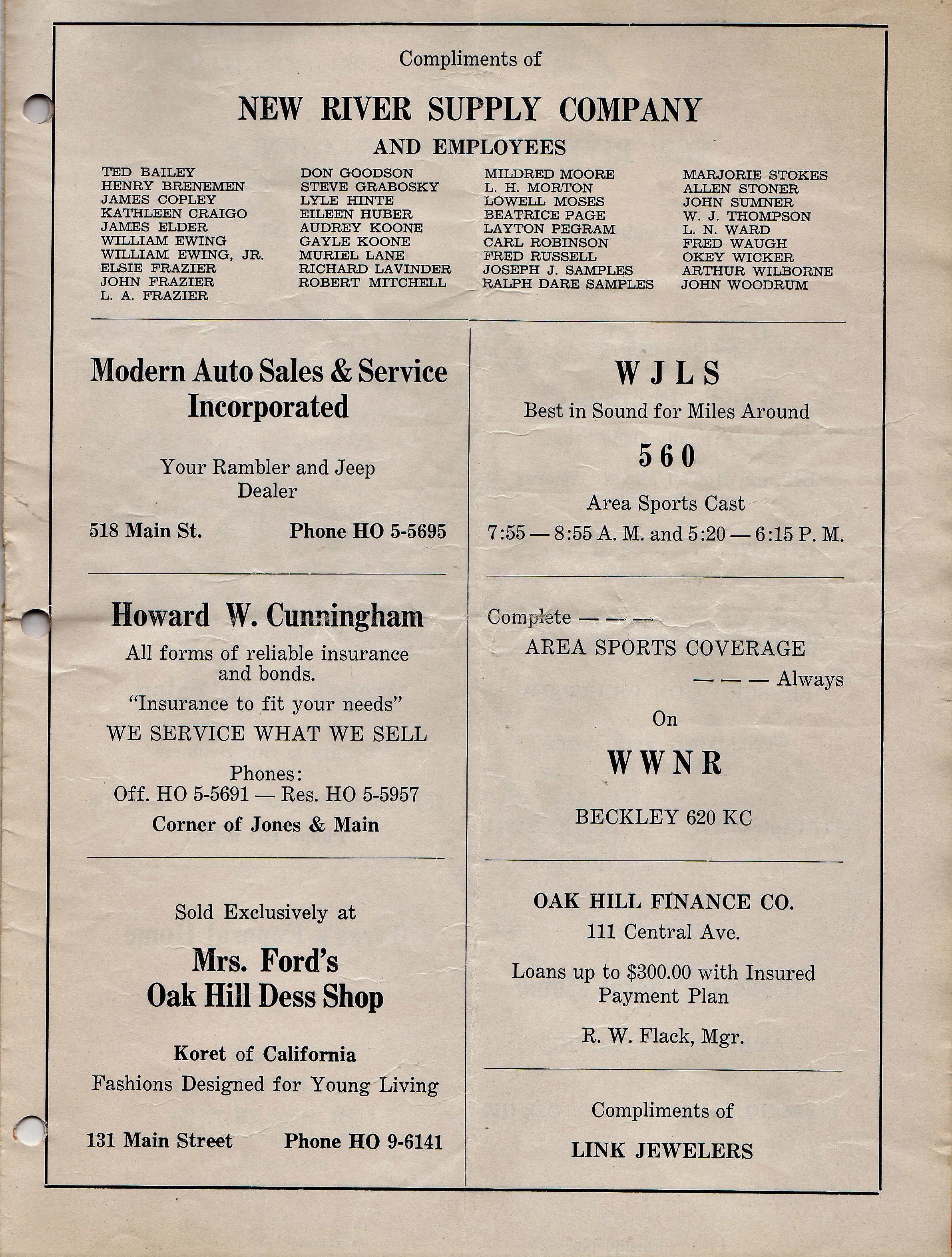 I had thought that a binder I had from Dad’s house was one of Ma’s old nursing school study binders (she had a number of those). I even had it on a shelf where I store her old schoolwork. But my annual “reorganize my library” binge allowed me to reexamine one particular binder and realize it was not what I originally thought. Keep in mind, when we cleaned Dad’s house prior to selling it, there had been TONS of paperwork, binders and books that dated all the way back to their childhoods and I am now trying to go through tubs and binders and shelves of “random stuff” while trying to figure out their meaning and how to “save it for posterity”. By “saving” I mean I will scan tons of things, blog about them here and then try to organize them in tubs I can stack in the basement. For the sports programs, once I have them all memorialized and shared with you good folks, I plan to donate them to Oak Hill Library and WV Culture Archives. I hate the thought of dismissing my parents’ memories, what they felt was important enough to keep. However, I get my packrat tendencies honestly and there is too much to have in some small display of memorabilia. So, to scan, blog and (when possible) donate seems the best way to honor their memories and share their joys with others.