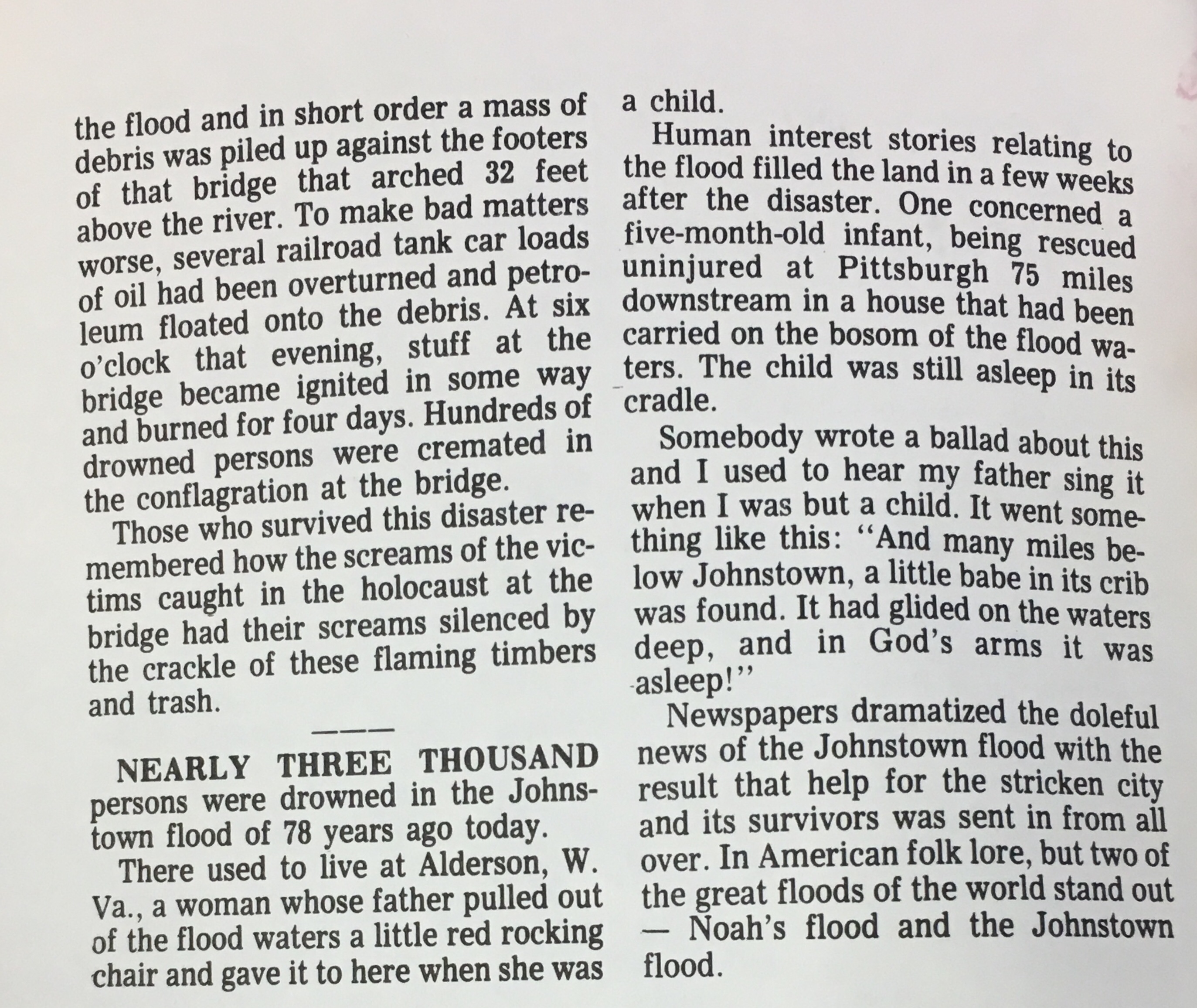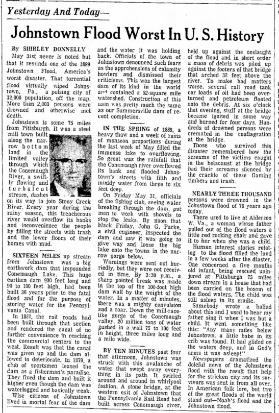 Johnstown Suffered Worst US Flood (below is now it appeared in the book)