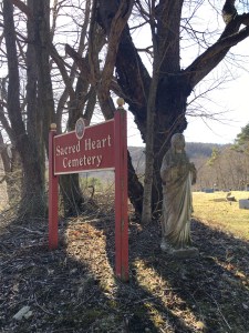 With the town being so small, it was relatively simple to find the cemetery.  We drove through the “unincorporated community” but could not find it at first glance.  We were excited to see a church perched upon a hill but it was St Peter and Paul’s Orthodox church. Then we caught a glimpse of a sign for the cemetery!  I was confused as to why the Sacred Heart cemetery was located at Sts Peter and Paul’s.