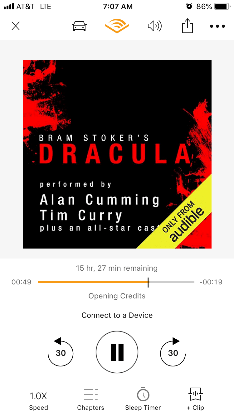 In my youth, I tried to read Dracula and found it too slow for my liking. As an adult, I added it to my “need to read” list. With the unreliable nature of my vision, an audible of this particular classic seemed the best route. I am so thankful that is the path I chose. I love that the book was read as journal entries of various sorts. I love Katy Kellgren as Mina Harker! I thought she was perfect.