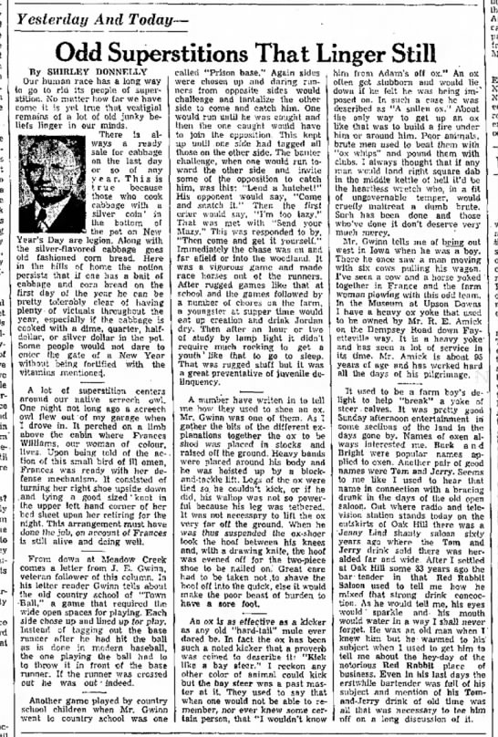 Yesterday And Today- Odd Superstitions That Linger Still By: SHIRLEY DONNELLY