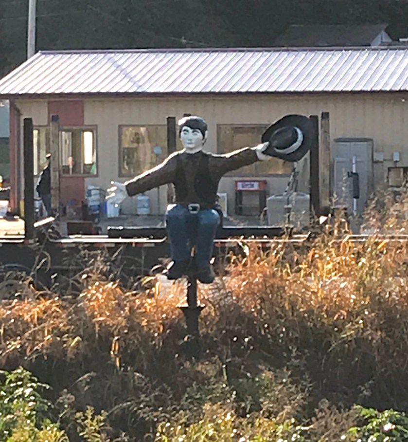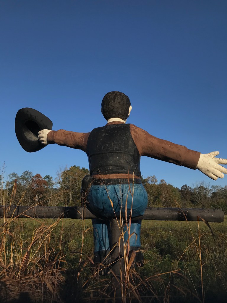 From the sparse bits of information I have found online, there appears to have been 10 restaurants total in the chain throughout WV and into Ohio. In front of (at least some of) the restaurants were these huge cowboy with his hat off, like he is waving it to catch your attention. When the chain closed down, the cowboys were sold off. There have been reported sightings in Ohio, Illinois and Florida. There is even a mention of a person owning one and placing it in their front yard. After my move to New Haven, we went to visit family in Cincinnati via Rt 32 and along the road we found this fella! This past weekend I decided to stop and take a couple pictures to post in a blog.