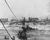 Thronged with boys and girls on their way to school and with teams and drivers, the Wire Suspension Bridge across the Elk River at the foot of Lovell street collapsed Thursday morning at 8:15 o’clock with terrible results. Although, such a catastrophe has been predicted time and time again by some people no one ever anticipated the occurrence at such time when the victimes are mainly of the school age.