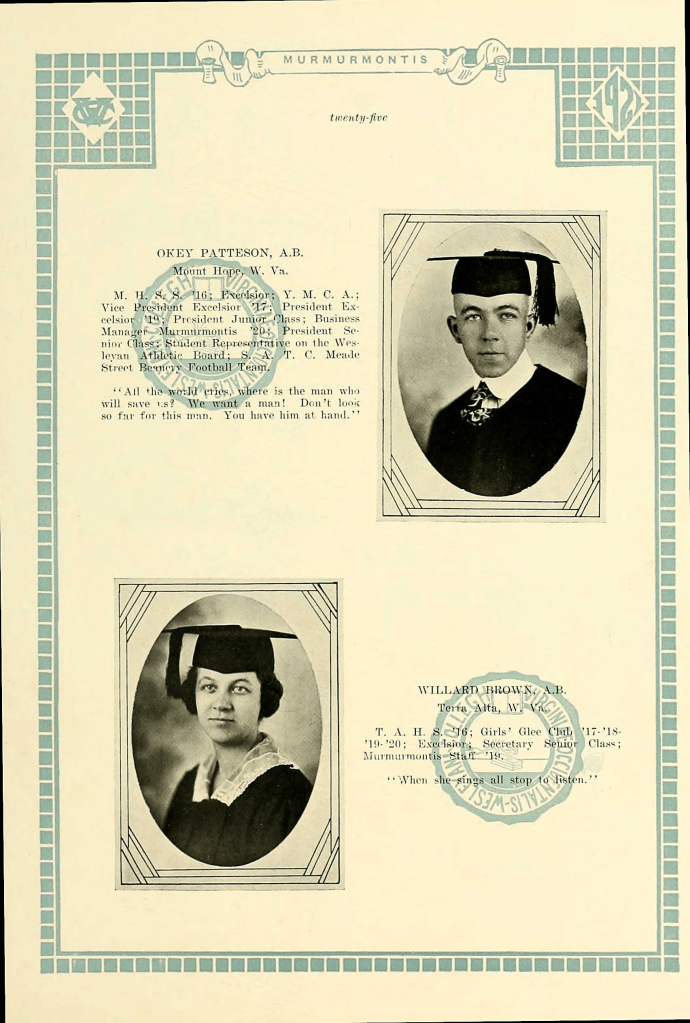 Patteson graduated with a bachelor’s degree from West Virginia Wesleyan College and did post-graduate work at Carnegie Institute of Technology. He was awarded honorary degrees of L.L.D. from West Virginia University in 1949 and from West Virginia Wesleyan College.