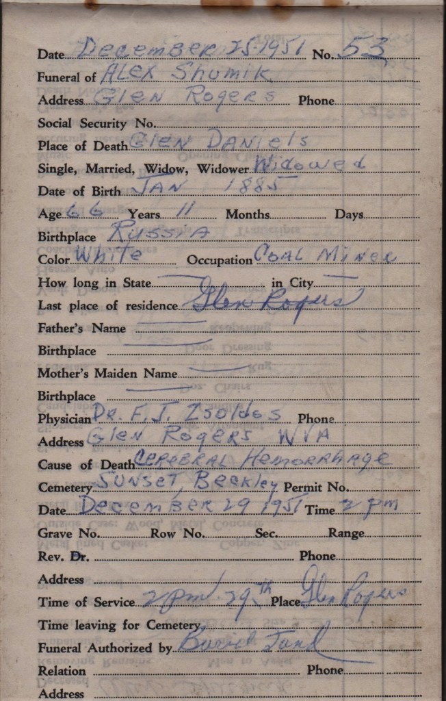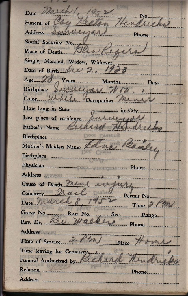 These events occurred in the area of Glen Rogers, Wyoming County, West Virginia. Yesterday I came across an article regarding a monument dedicated to the miners who lost their life in the mines there and I found two of the names from the book noted on the rosters. I have reached out to Wyoming County Historical Museum and have offered to donate this book to their archives in the name of my Grandfather. I hope to make the trek to the museum in February to drop it off and to look at their archives.