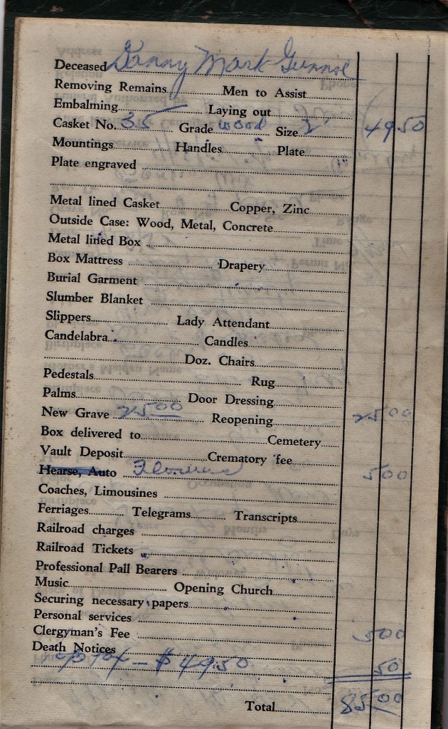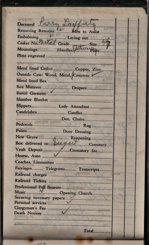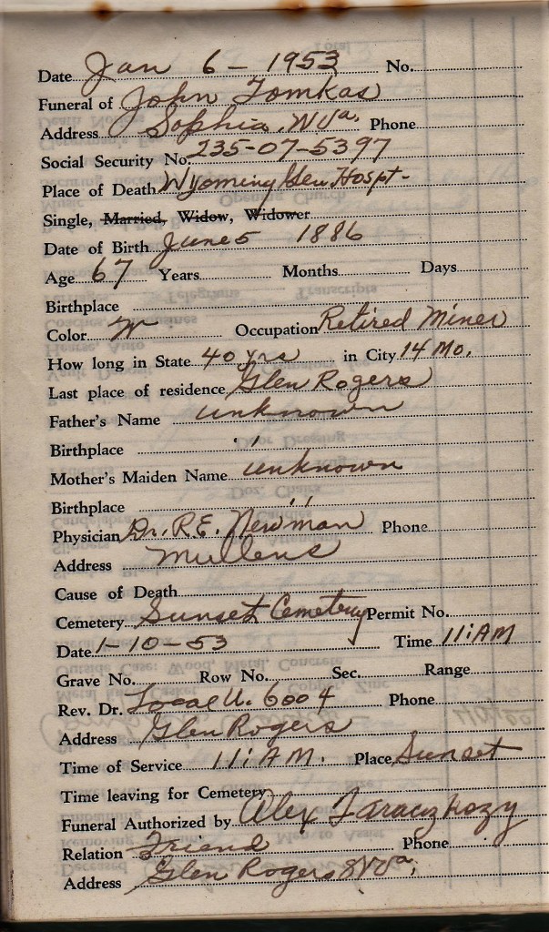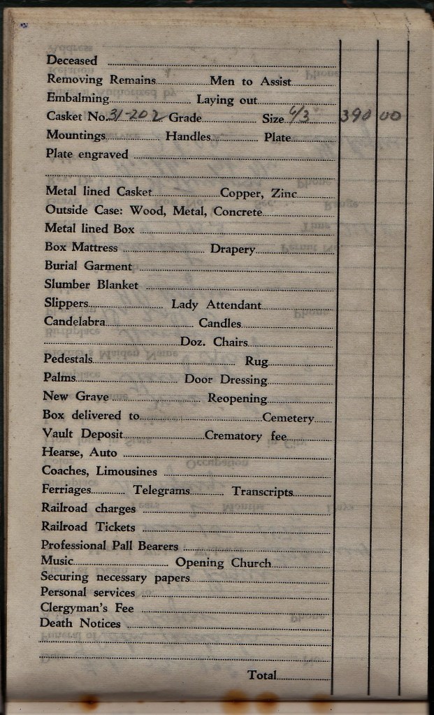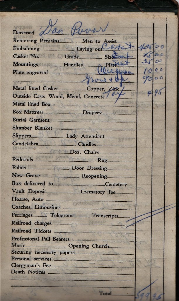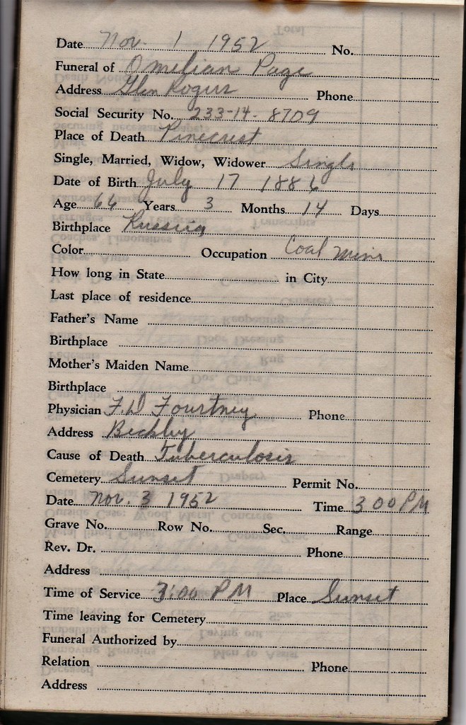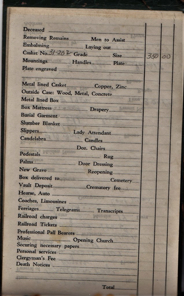 I have written about this little green book once before. I found it in some paperwork at my parents’ house after the death of my Dad. It appears that while in the Union, my Grandfather, Alex Taraczkozy, was responsible for the funeral funds and organized payments for expenses associated with funerals of both miners and their family members.
