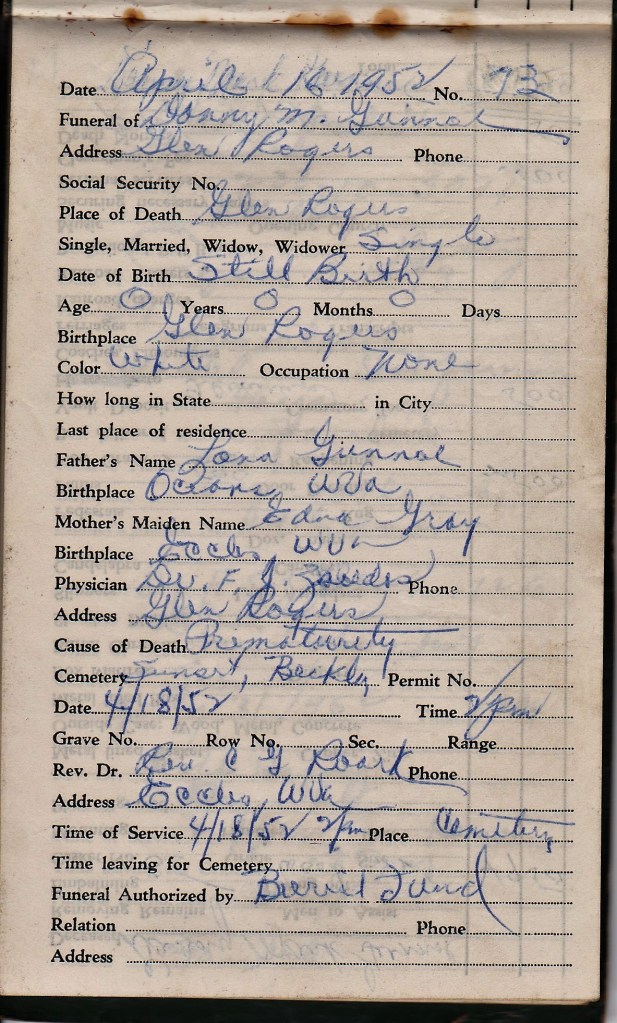 Child, Stillborn. Mother’s maiden name: Edna Gray.
