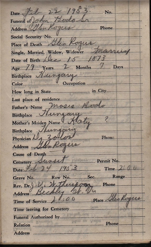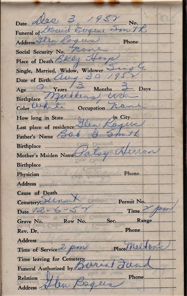 Details For Union Funeral Arrangements: Glen Rogers 1951 – 1953