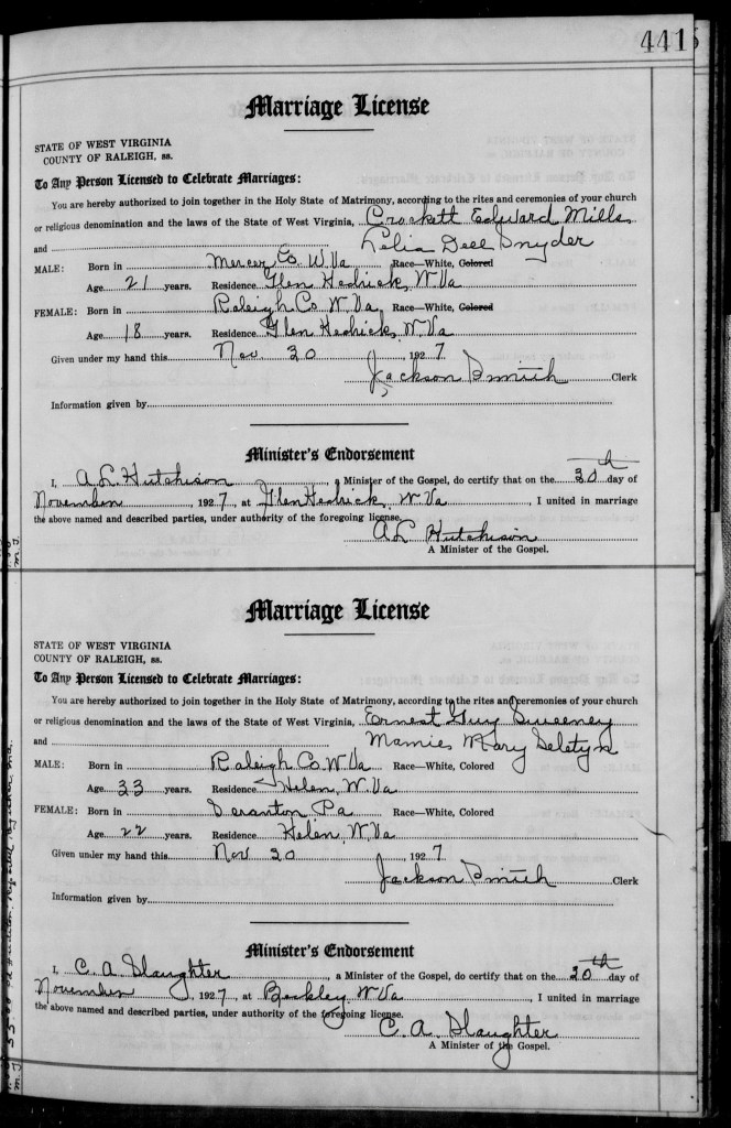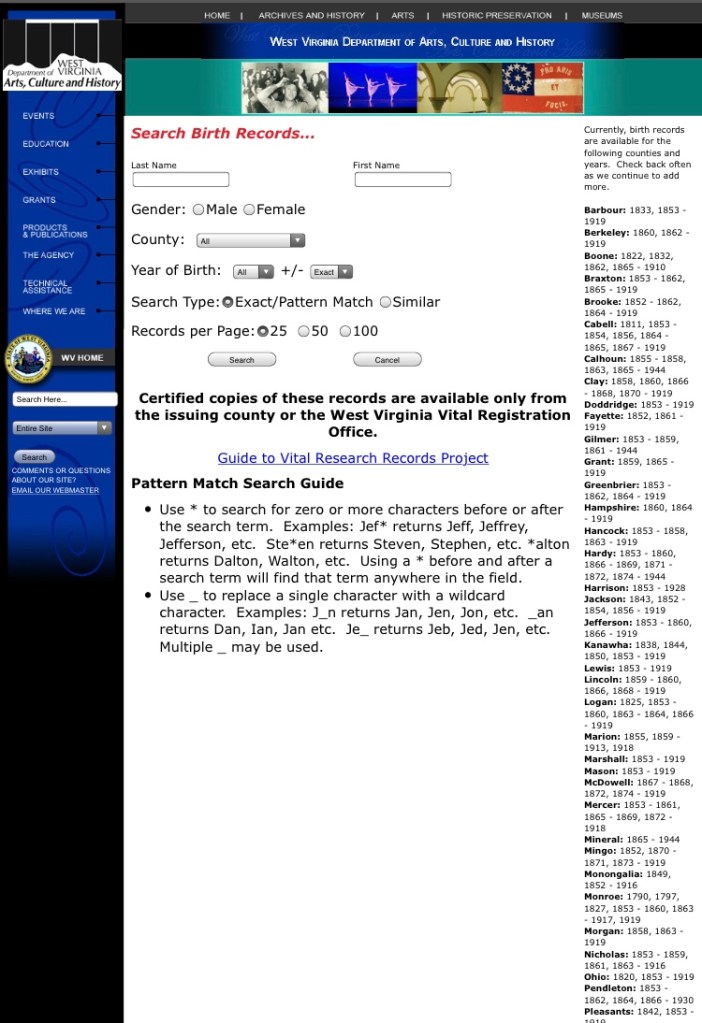 Sometimes you can get both the birth certificate and the register pages. that is always a treat. The dates on birth certificates range from 1790-1944. Sometimes, even if you are certain a person is born in WV, you just cannot find the certificate. Depending on the year, the area of residence and poverty level of the family – sometimes a birth certificate was never produced.