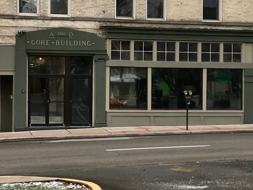 Across the road is a building that stands out. Above the doors it is noted “Gore Building 1910”. I found this on the Clarksburg city page: Past: The Gore Building, one of Uptown’s most notable classic structures, has recently regained the attention of Clarksburg’s citizens. Once a popular hotel in the early 1900’s, the Gore Building was owned by Dr. Truman E. Gore, Physician and brother of Howard M. Gore, Governor of West Virginia (1925-1929). Although it is considered to be somewhat of a neoclassical design, the hotel was erected to display many elements of the Renaissance Revival architectural period. The building was utilized as a hotel for many years before it was converted into office spaces, and it wasn’t until 1998 that the building was purchased by successful businessman and entrepreneur, Steve Haning to be utilized as commercial and residential property. With much exterior revitalization, including architectural facelifts and a suitable green and kaki paint job (original color); the building has become an attractive centerpiece for those entering Clarksburg from U.S. Route 50 and a perfect example of the positive direction that Uptown Clarksburg is moving in. The staff, under the direction of Haning, has worked diligently to capture the historical façade and many traditional components of the building, however, the interior structure has not fallen short of a true transformation in modernization.