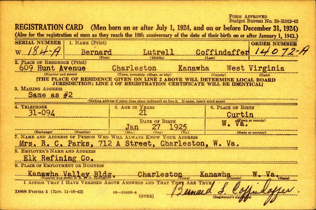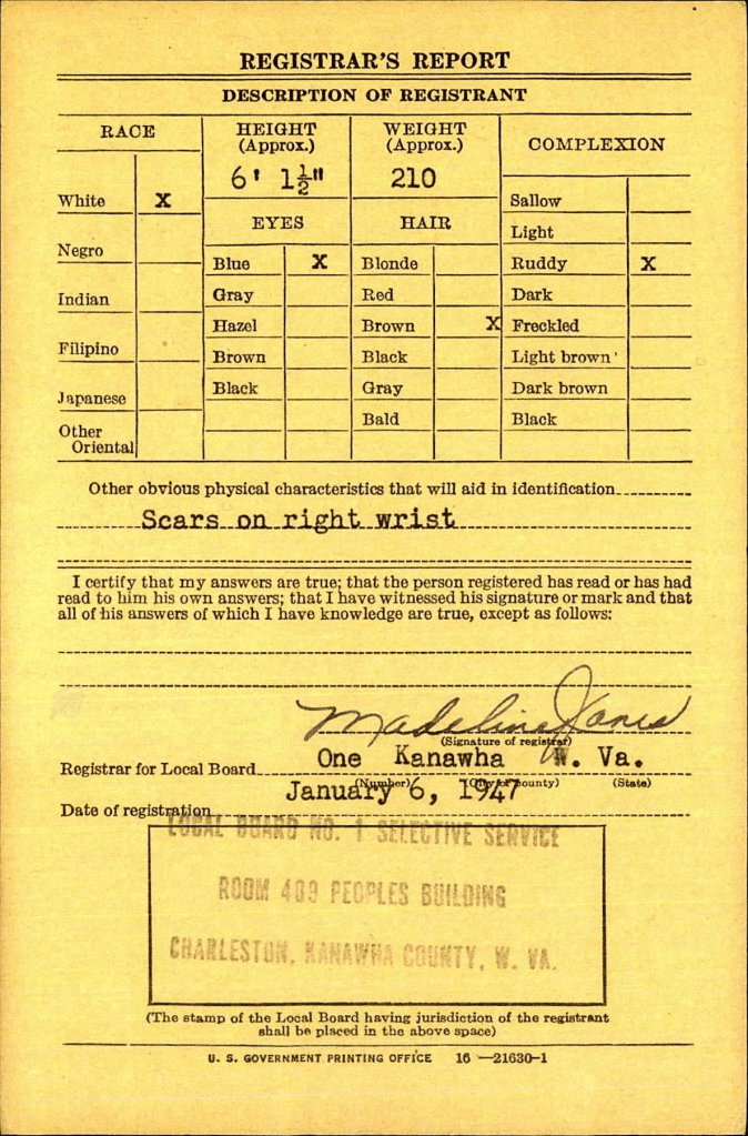 Draft Registration Cards for West Virginia 10/16/1940 – 03/31/1947